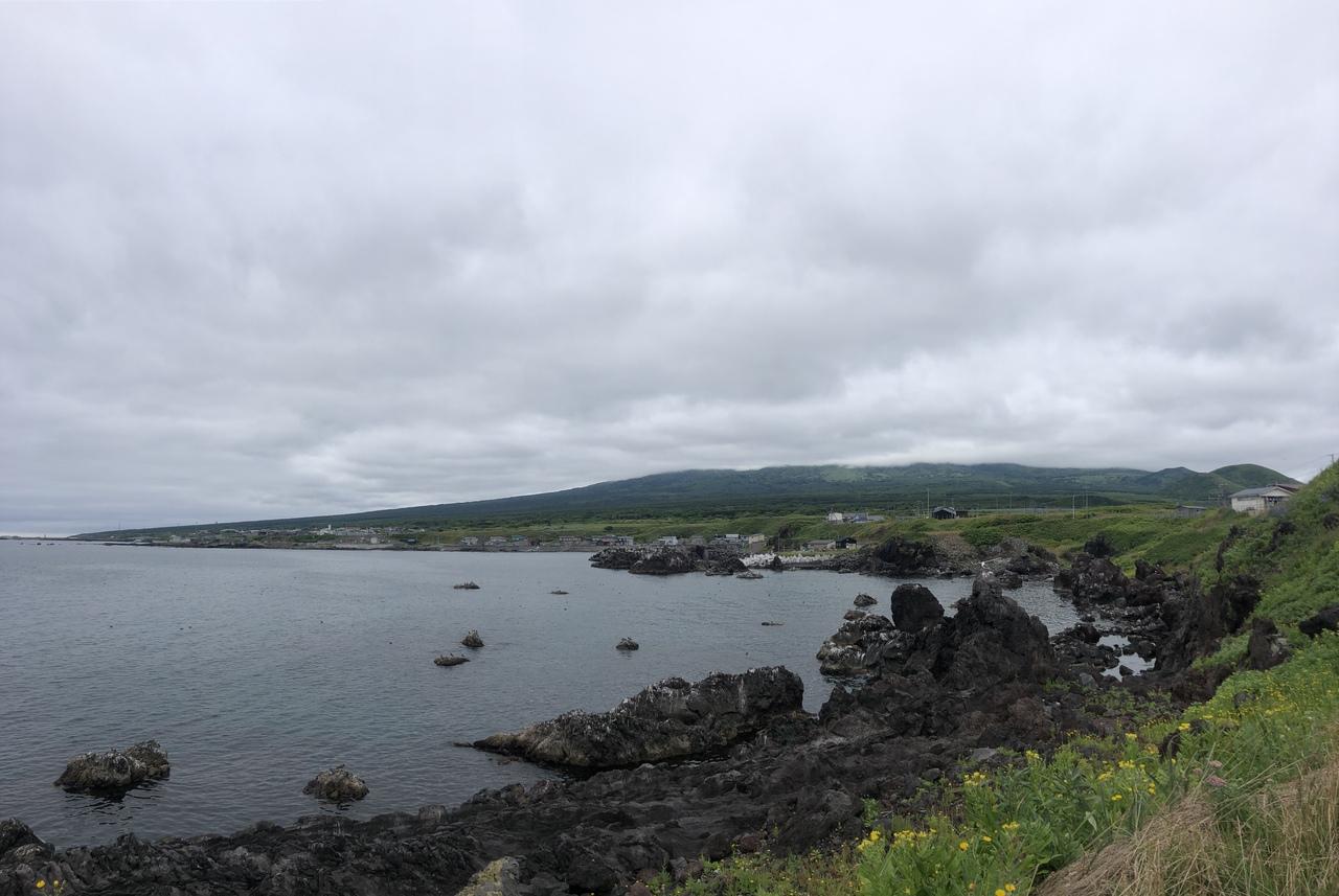 黒いのは利尻富士が噴火して流れ出た溶岩。