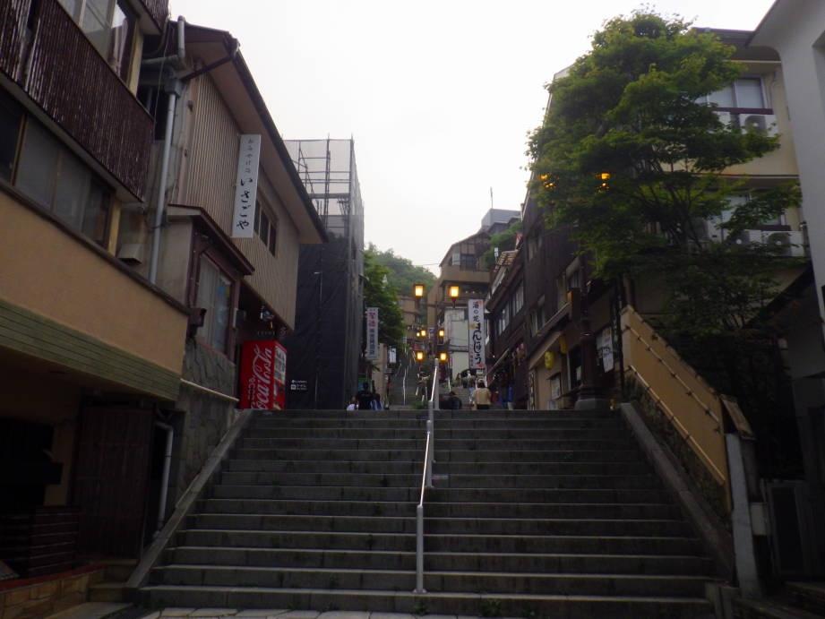 入浴後、「石坂旅館」のすぐ近くが伊香保温泉の「石段街」だったので行ってみました。伊香保温泉のポスターにも使われているシンボリックな石段のようで、石段の両脇には温泉まんじゅうを売る店や飲食店が立ち並びレトロな雰囲気を醸し出していました。