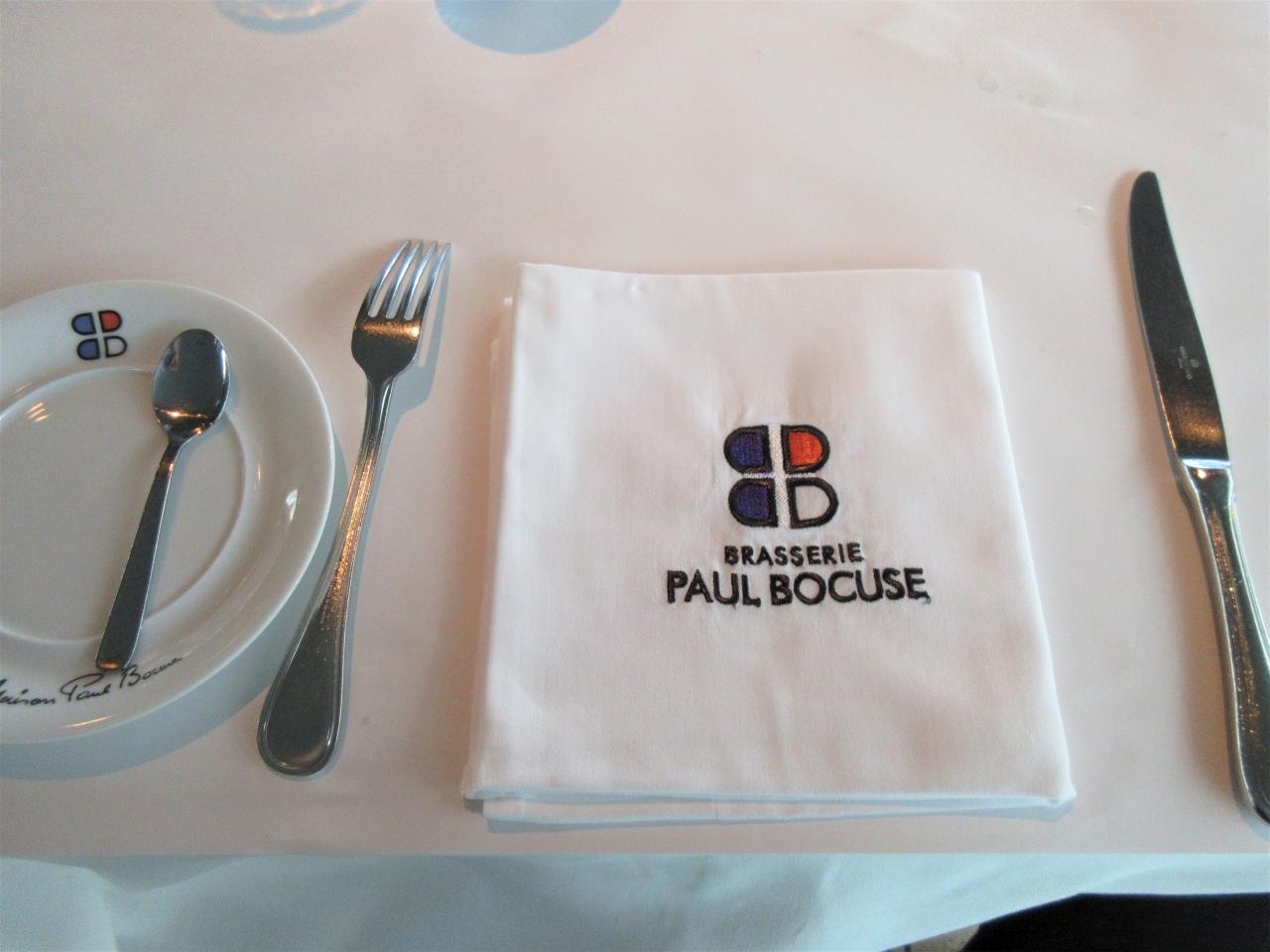 ポール・ボキューズの刺繍の入ったナプキンの一角にボタン穴が空いていて、シャツのボタンにかけて、よだれかけのように使うのかな?(そんなことはしませんでしたが)