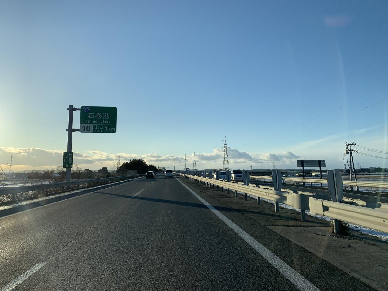 年末年始の宮城周遊、気仙沼から南下して石巻へ向かいます。気仙沼市と南三陸町の境界に、古くから霊峰として奥州藤原氏も信仰していたといわれる田束山(たつがねさん)が前方に見えます。