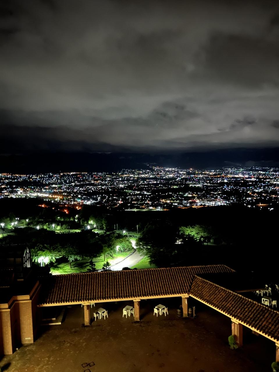 気づいたら、外は落雷と大雨です。写真に収めることは出来なかったですが、稲妻があちこちで光っていました。スタッフの方の話では、盆地全体を見渡す眺望で、稲光は毎回よく見えるのだそうです。
