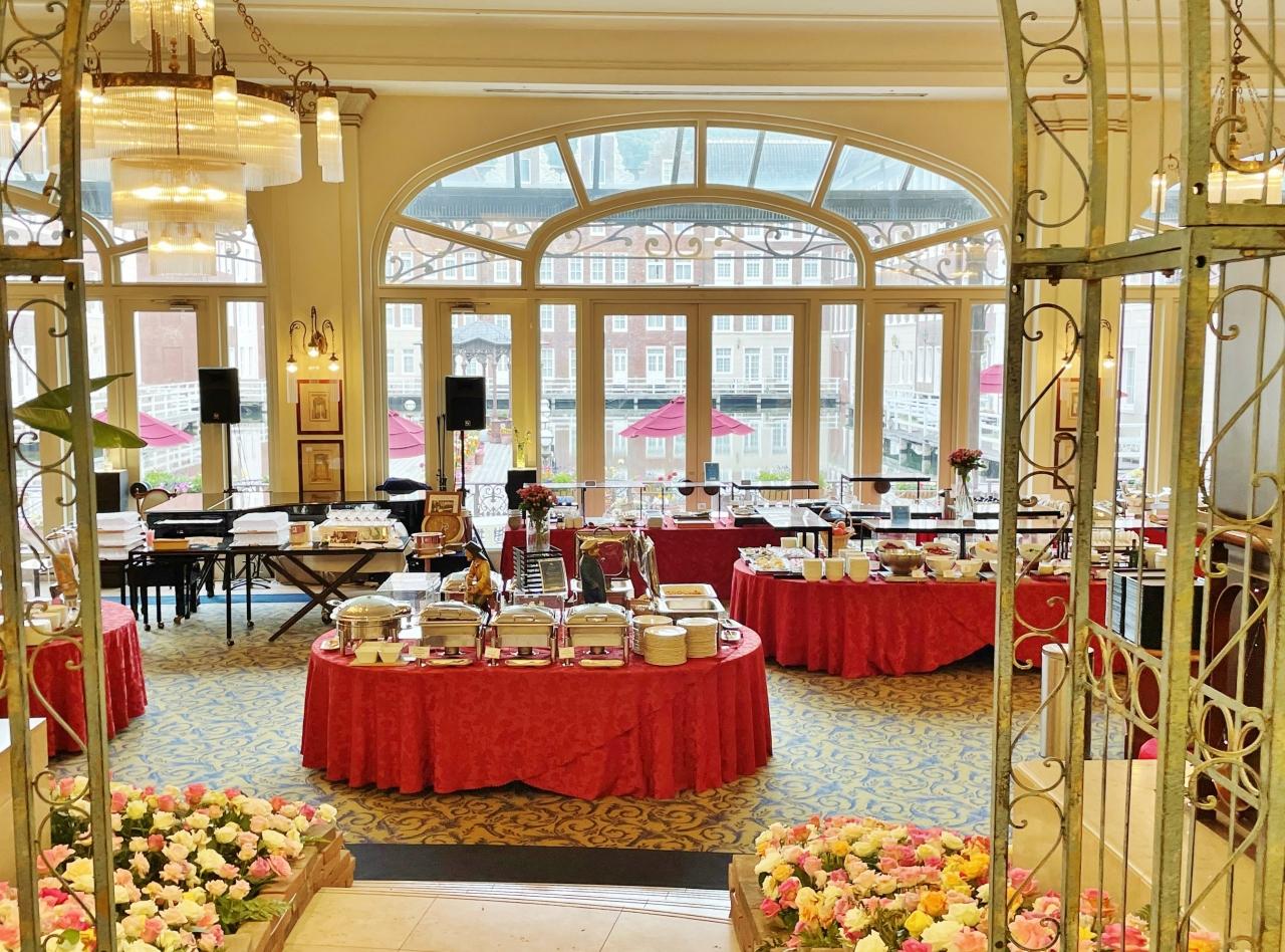 朝食はビュッフェ形式、大きな窓ガラスが広がる開放的な空間にお料理がズラリと並び、とても豪華です。