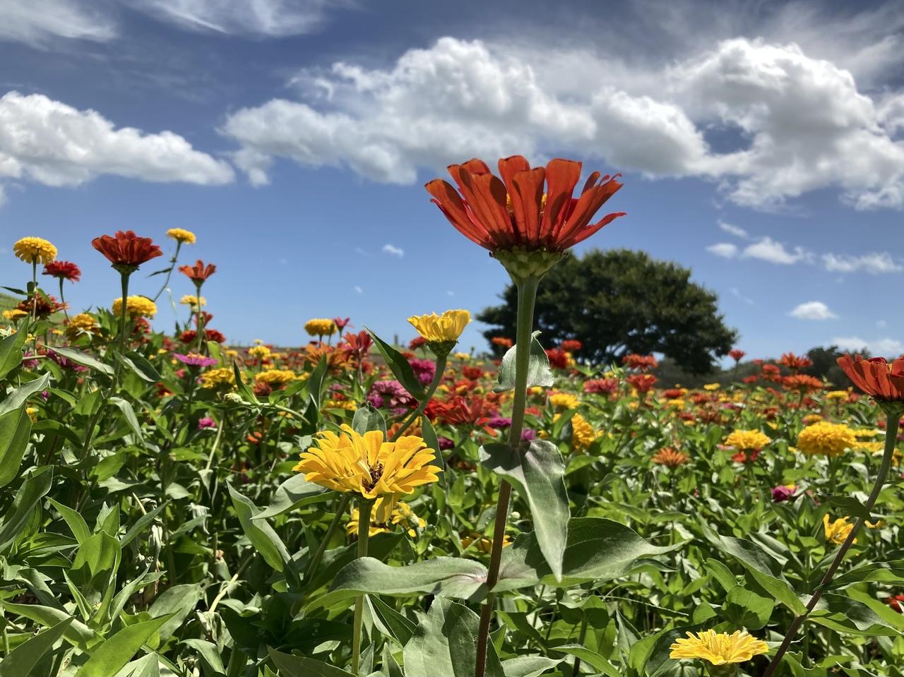 緑色のコキアを見に行ったら、ジニアという花も綺麗に咲いているとホームページにでていました。ジニアなんて名前、聞いたことはないと思いましたが、調べると「百日草」と同じとのこと。と言っても「百日草」も言葉としては聞いたことありましたが、実際にどんな花かは知りませんでした。 -