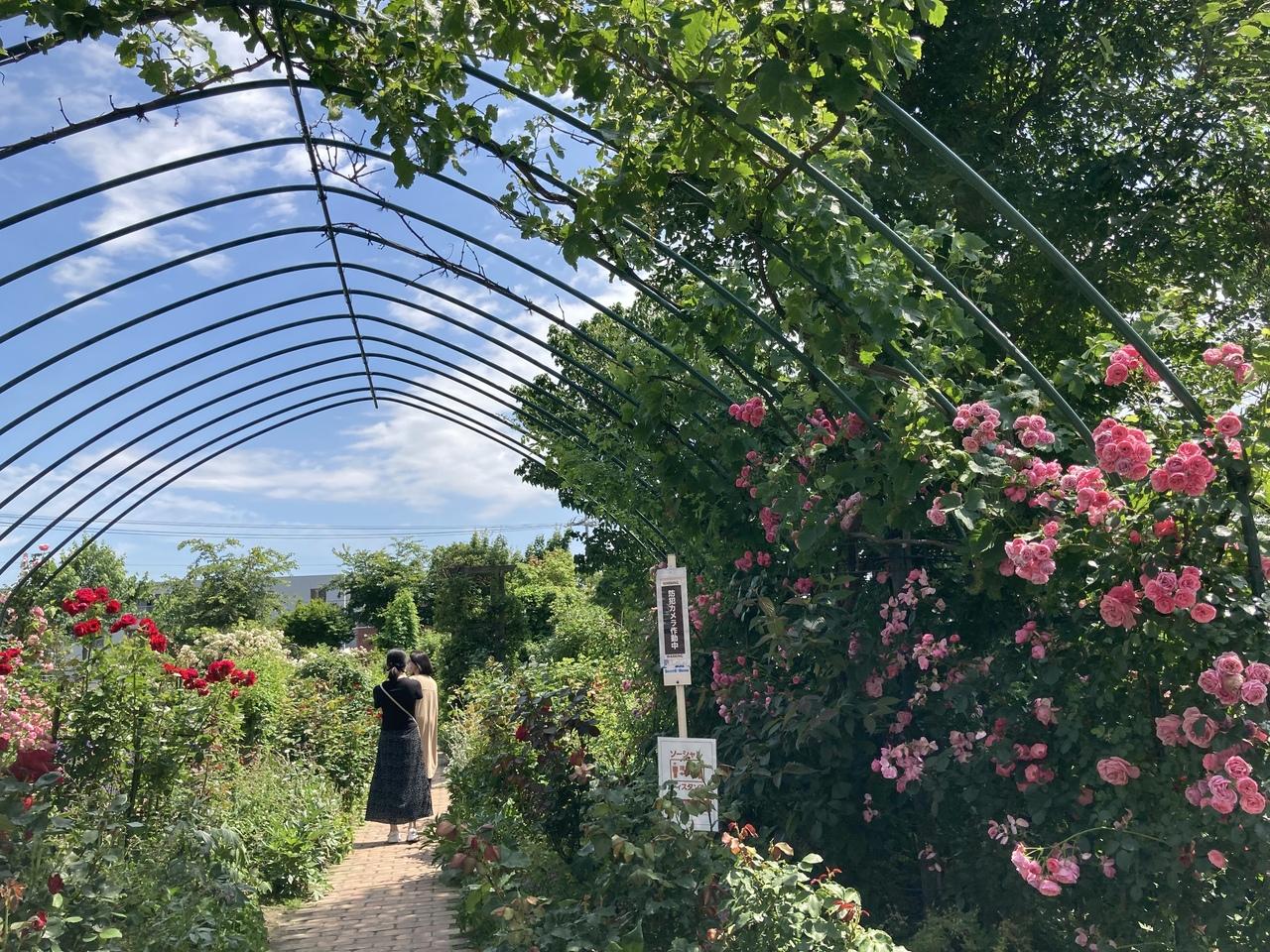 敷地内にある「ロイズ ローズガーデンあいの里」。毎年6月下旬~7月中旬頃に500種以上のバラを始めとする様々な花が咲き誇り、無料で公開されているのです。