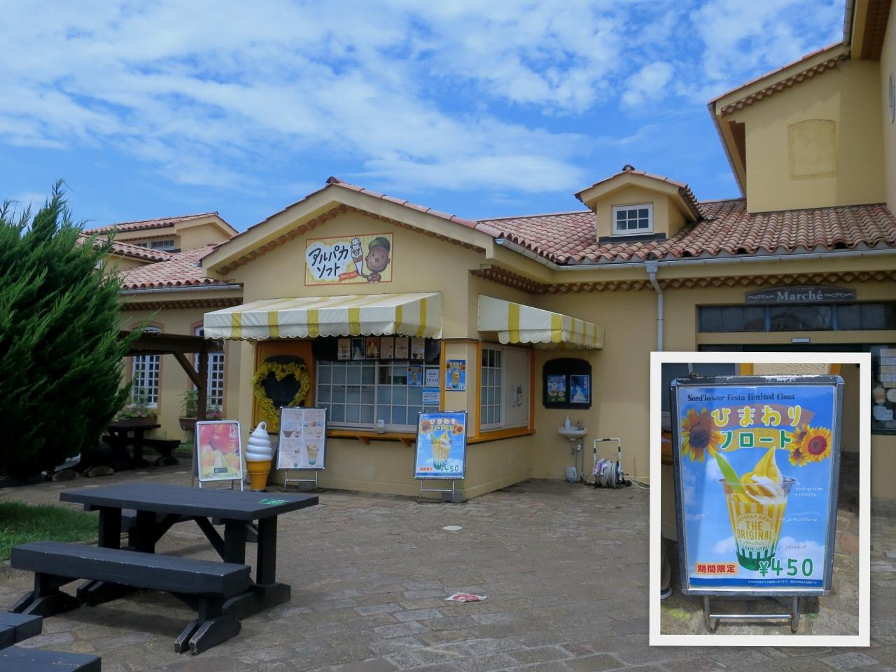 ソレイユの丘では、背の高さほどあるヒマワリを楽しんだあと、園内を散策。