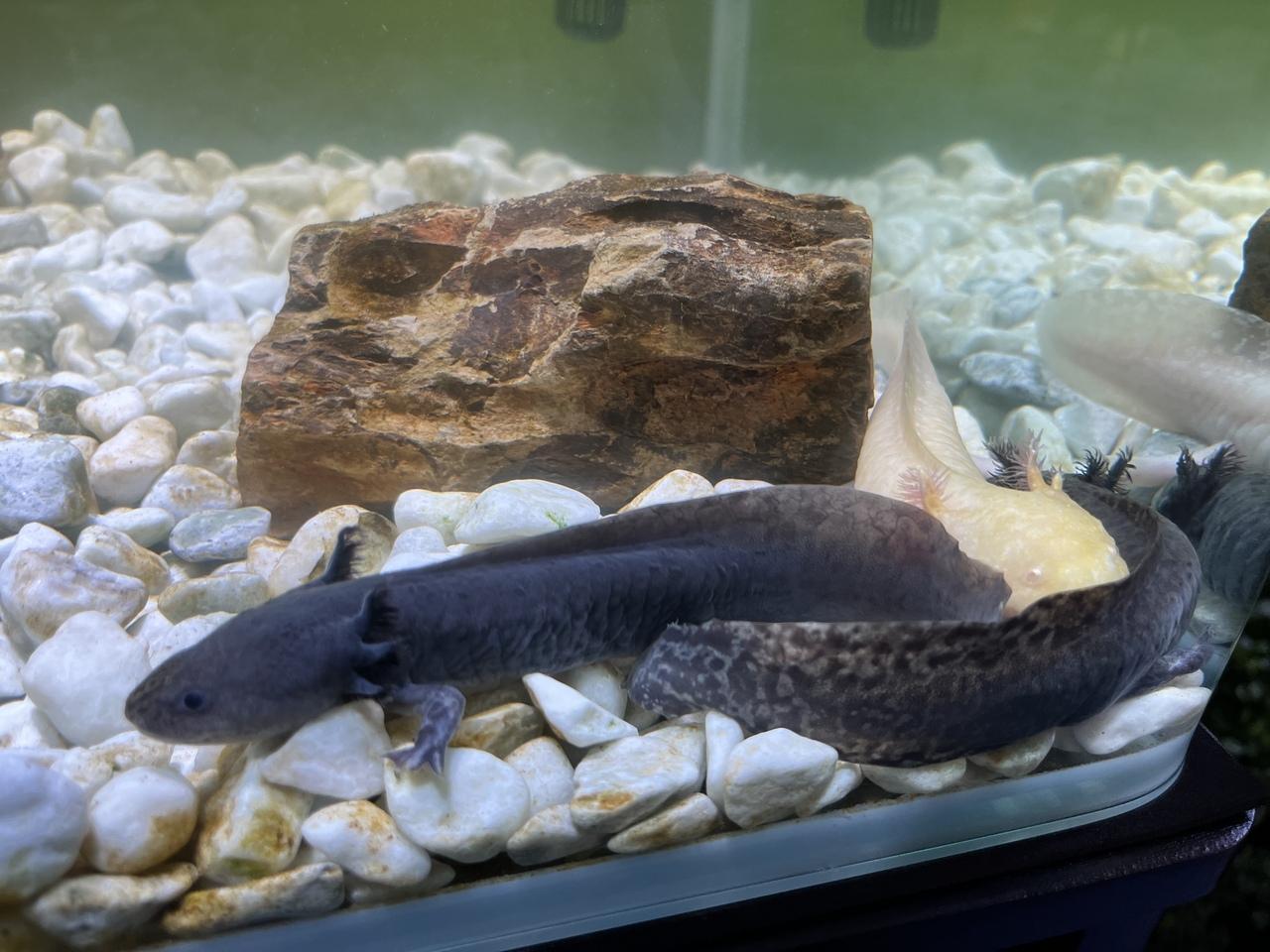 幼魚水族館には海水魚だけではなく淡水魚も展示されて、メキシコサラマンダーがいました。かつてウーパールーパーとして流行った魚です。首の周りにある触覚ぽいのはエラだそうです。