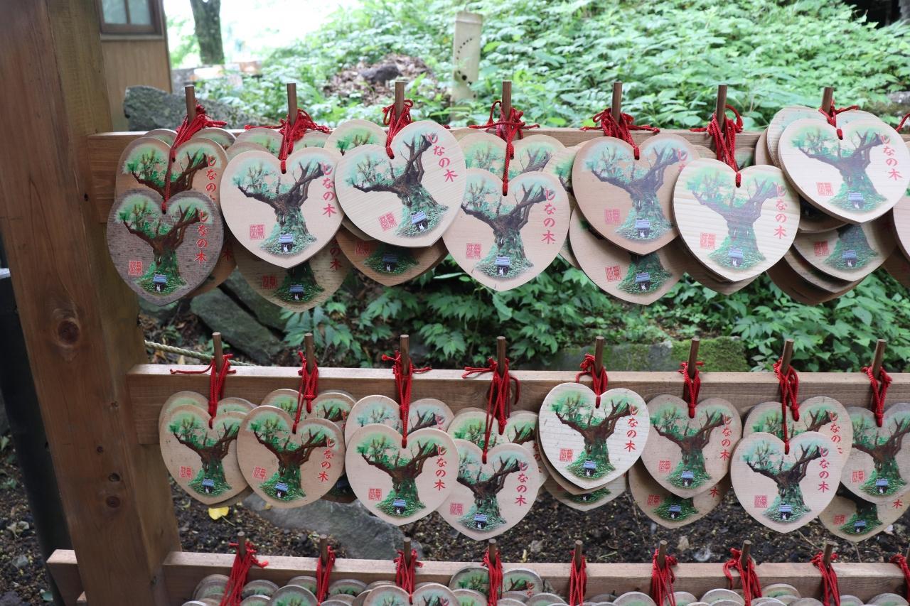 ハート型の絵馬もあり。