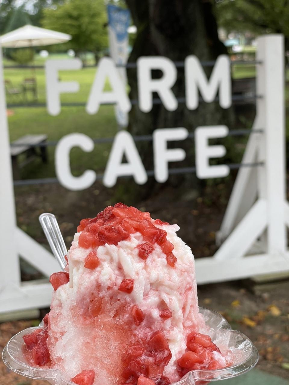 千本松牧場の牛乳から作った練乳をかけたイチゴのカキ氷です!