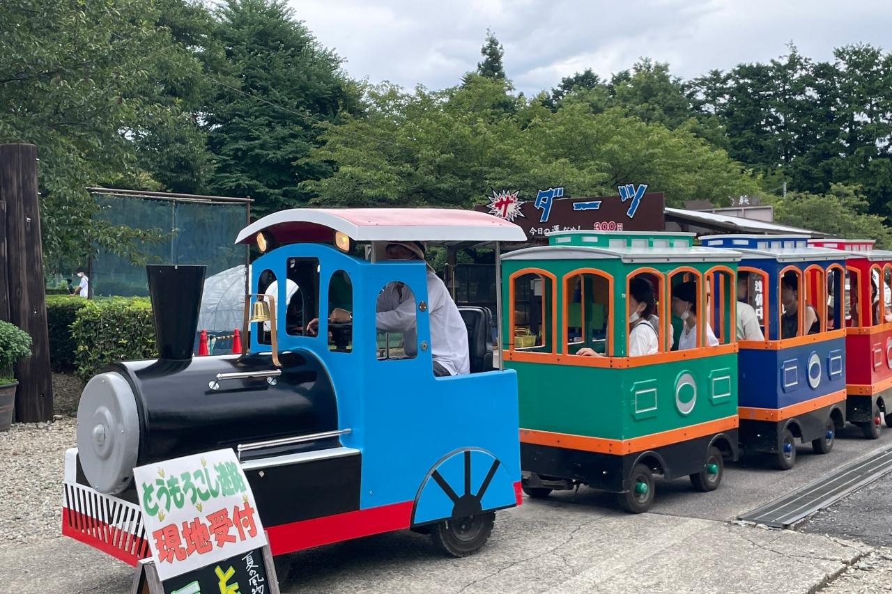 牧場内にはショッピングセンターなどで見かけるSL風カートが走っていました。
