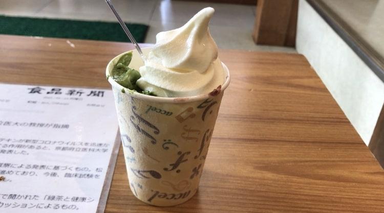 抹茶の苦味と餡子、ソフトクリームの甘さがよく合います