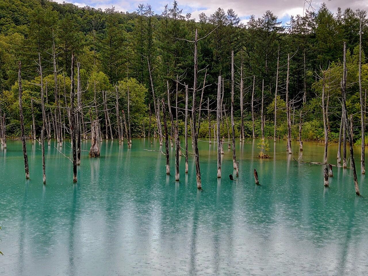 青い池ですが、今回も天候が残念です(-_-)