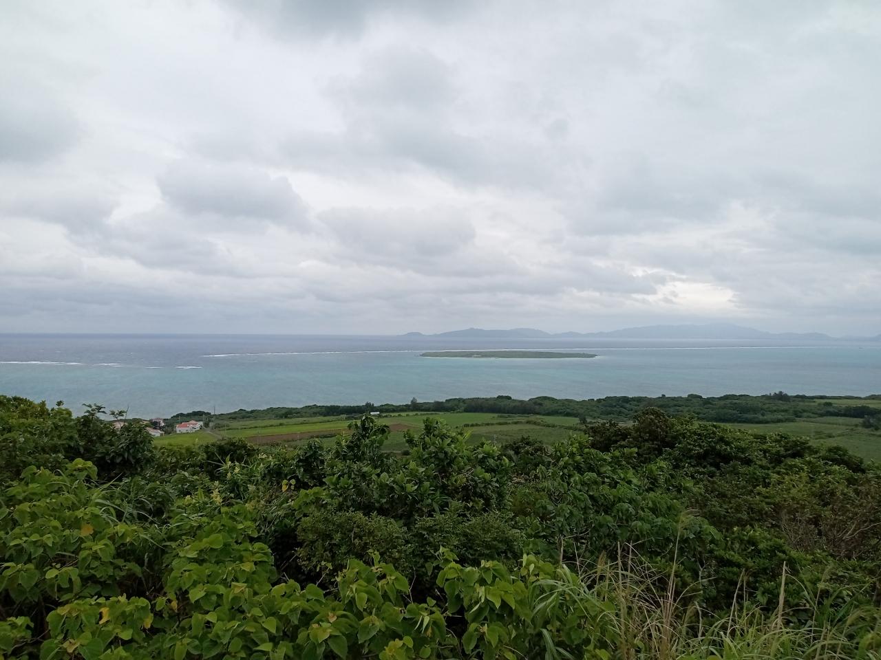 先が下っていて高台の位置になっていて、素晴らしい眺めなので車を停めます。西表島も近くに見えてきて、素晴らしい景色です!