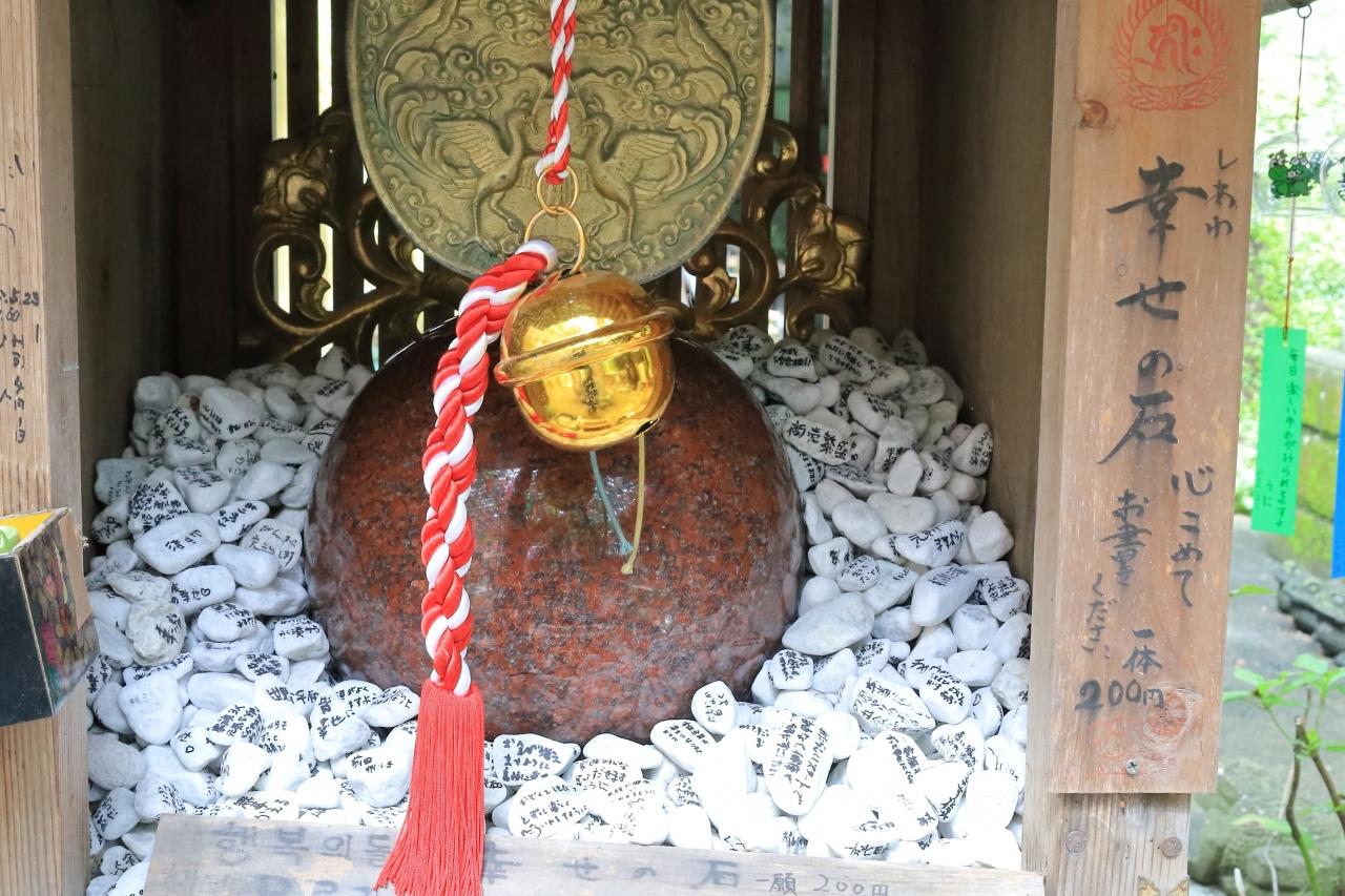 「幸せの石」1願い200円。石に願いを書くと叶うそうです。願いが奥まで一杯に積まれいます。