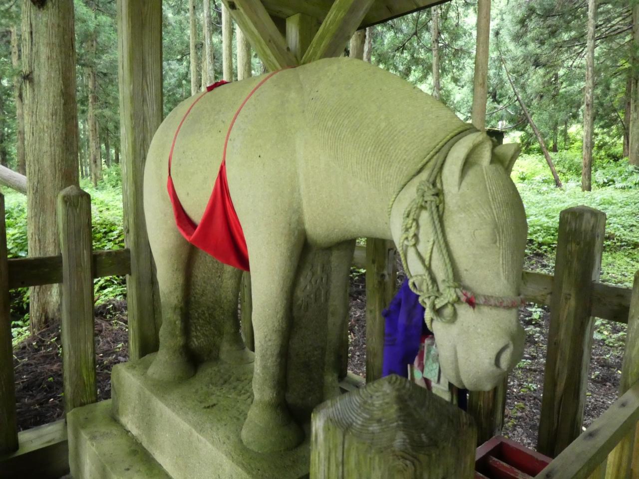 その参道には、狛犬に代わって湯沢市関口の石工によって作られた二体の石馬が明治二年に安置され、「石馬っ子」と呼ばれ、親しまれている。