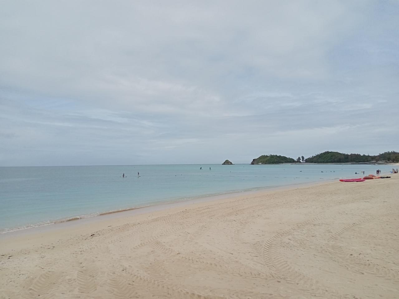 砂浜が艶やかな肌色で綺麗ですね!海の色も曇り空下にもかかわらず美しいです。さすが沖縄本島有数のビーチです。