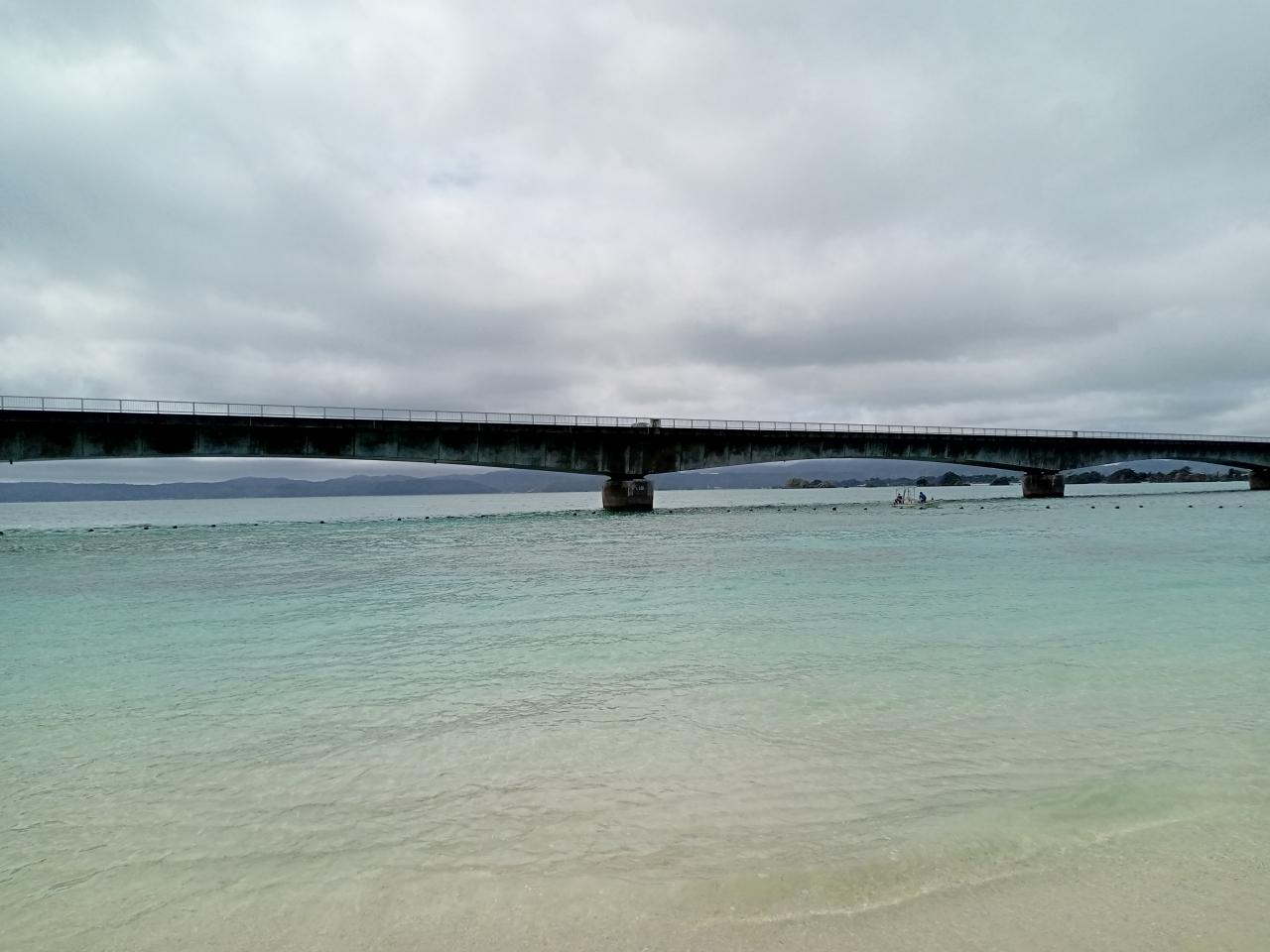 先ほどよりも橋の右側でも雲が広がってきました。それでも海と砂浜のコントラストが美しいですね!