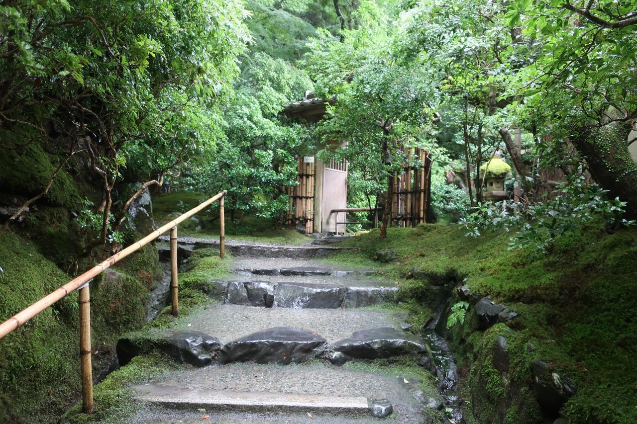 小雨模様の天気もあって、苔の緑、木々の緑がとても輝いて見えます。拝観者も比較的少ない雨の日は狙い目かもしれません。 -