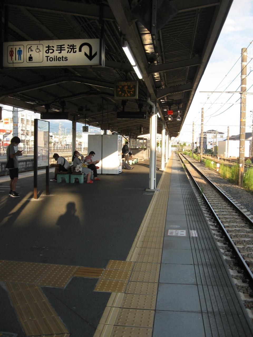 ホーム中程に写る自分の影が心霊写真みたいで微笑ましいです。