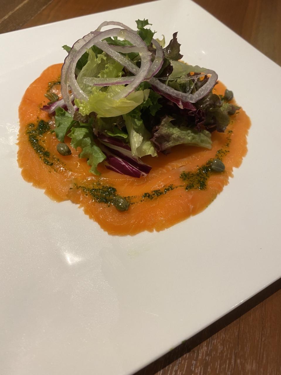 写真は前菜のサーモン。