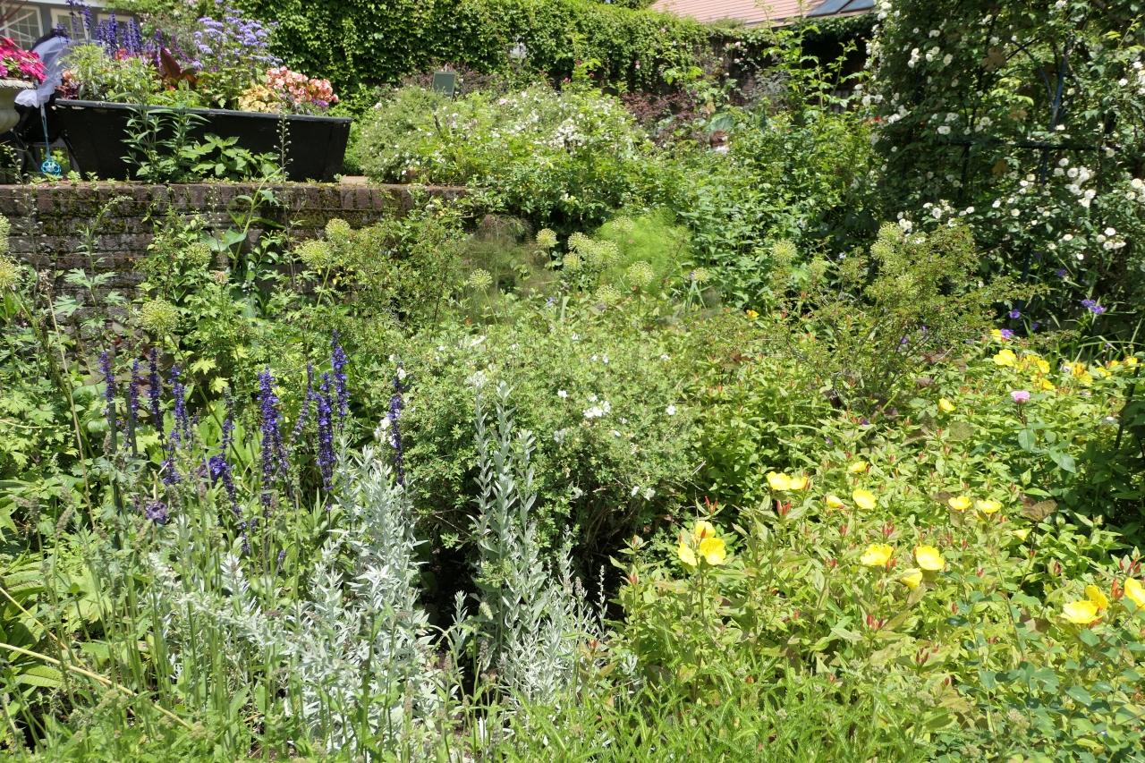 バラだけでなく、いろいろな草花が混合に植えられていて、