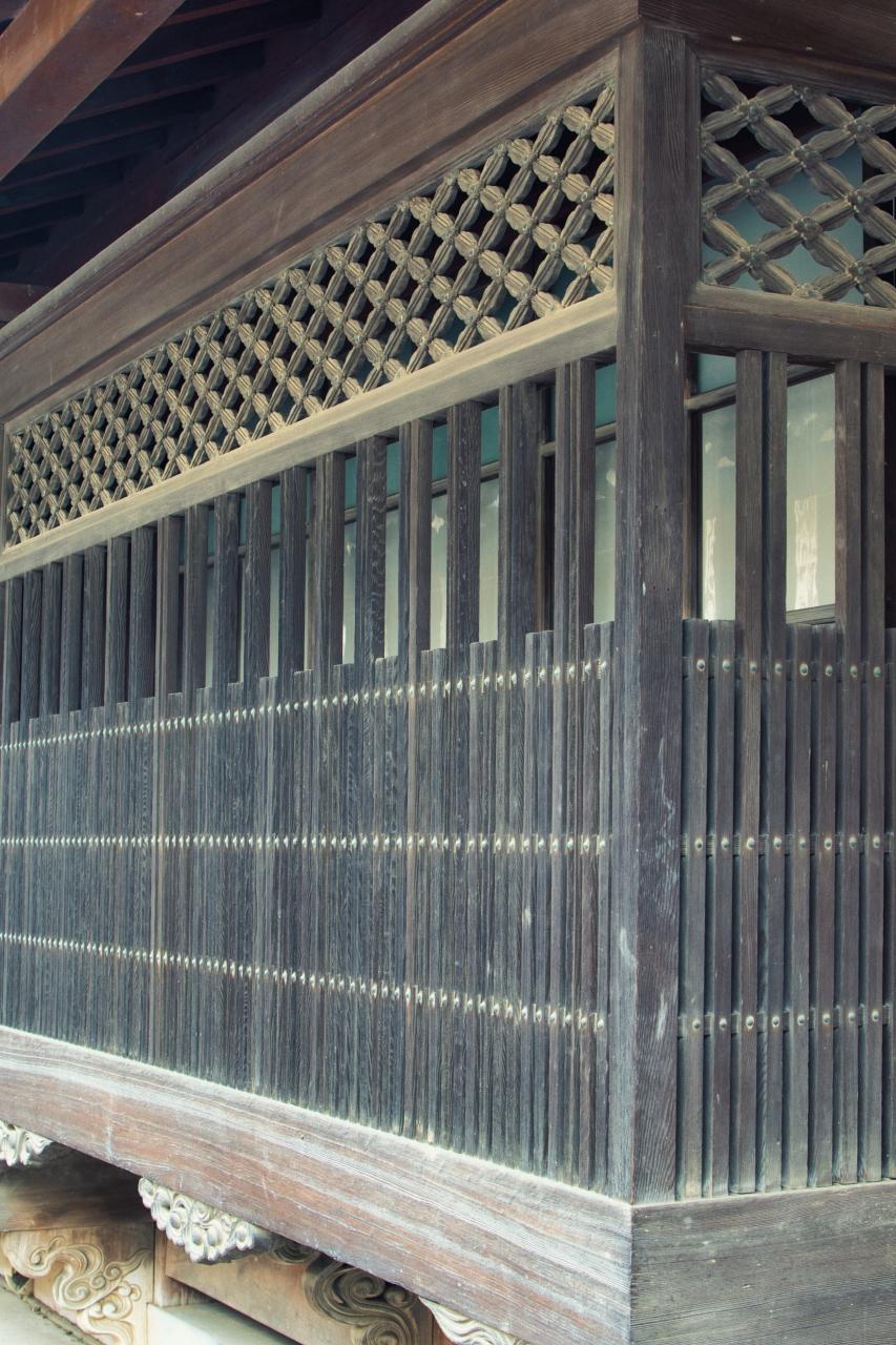 弁柄で塗られた「出格子」が続きます。室内へ光・風を確保したおしゃれな通風シャッターみたいになもでしょうか。