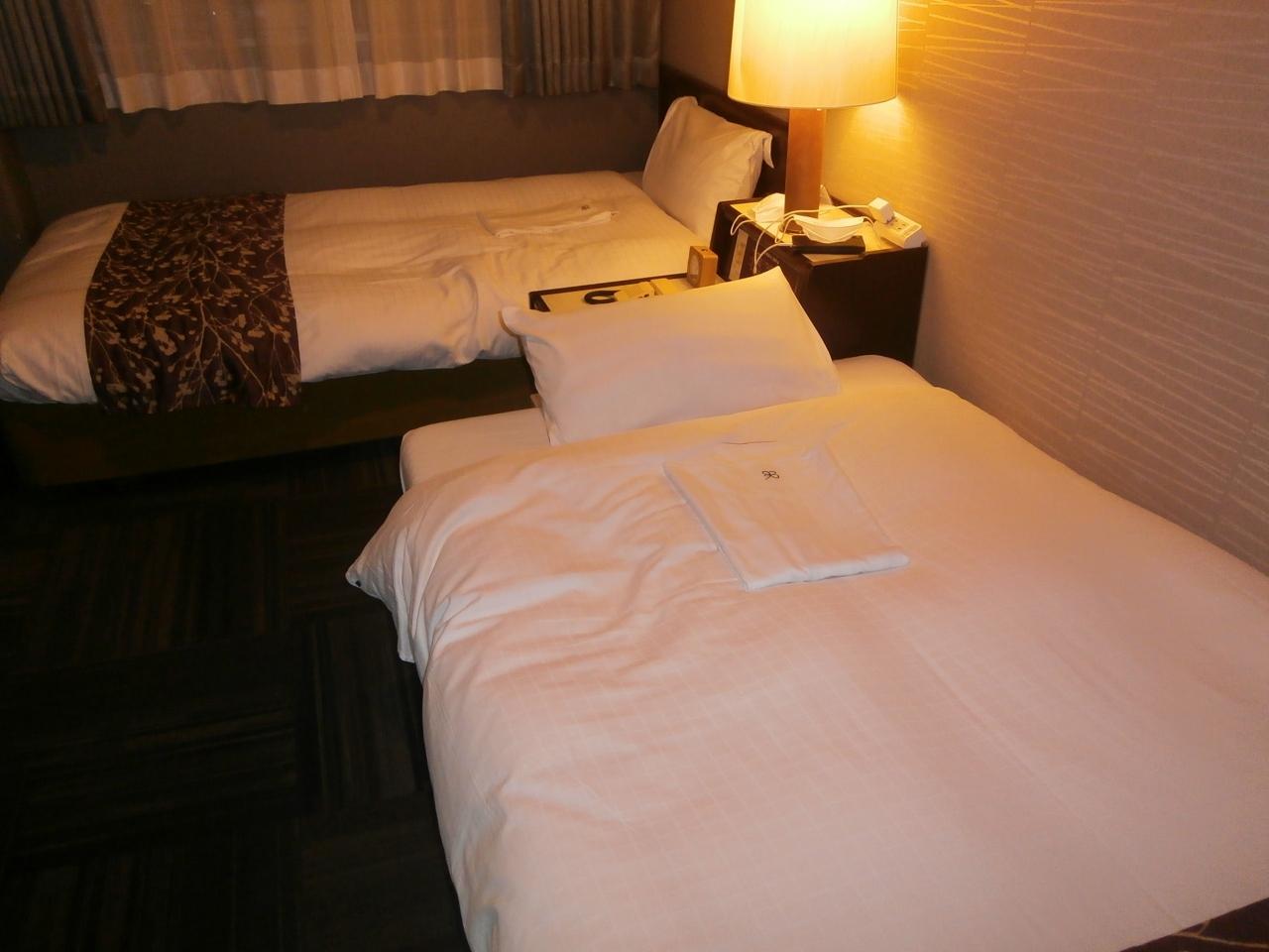 狭い部屋にベッドを2台入れた感じです。まあ問題なしです。