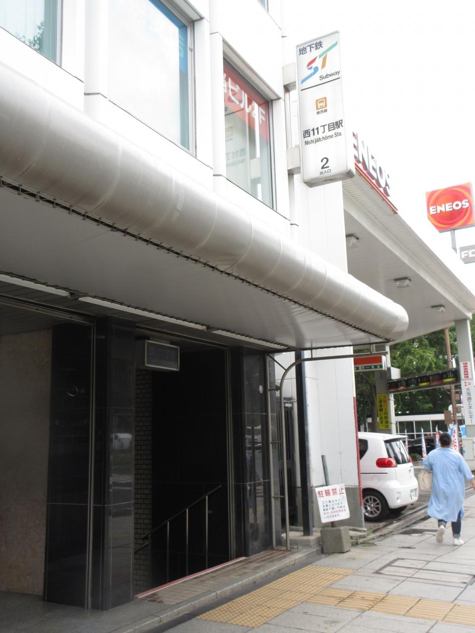 地下鉄西11丁目の駅へ向かいます。地下鉄東西線で新札幌の駅まで乗り換えなしで行けるので便利です。