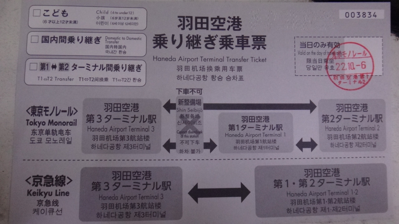 ある方のブログで国内線~国際線の乗り継ぎに京急 モノレールが無料で使えるとあったので 乗り継ぎ券を窓口でもらいました