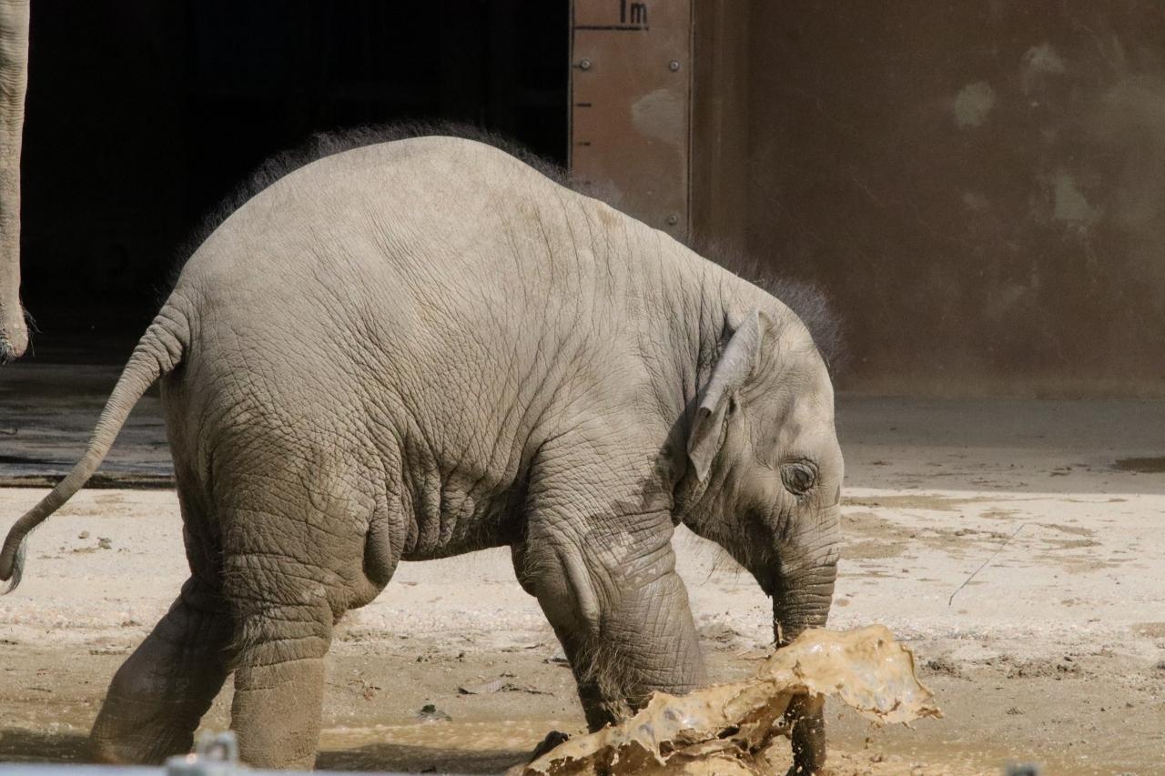 それからアジアゾウの親子。命名式は大混雑で割愛しましたが、11時からの30分の屋外展示中は、行列で見られないかと思ったら、意外にずっと見ていられました。