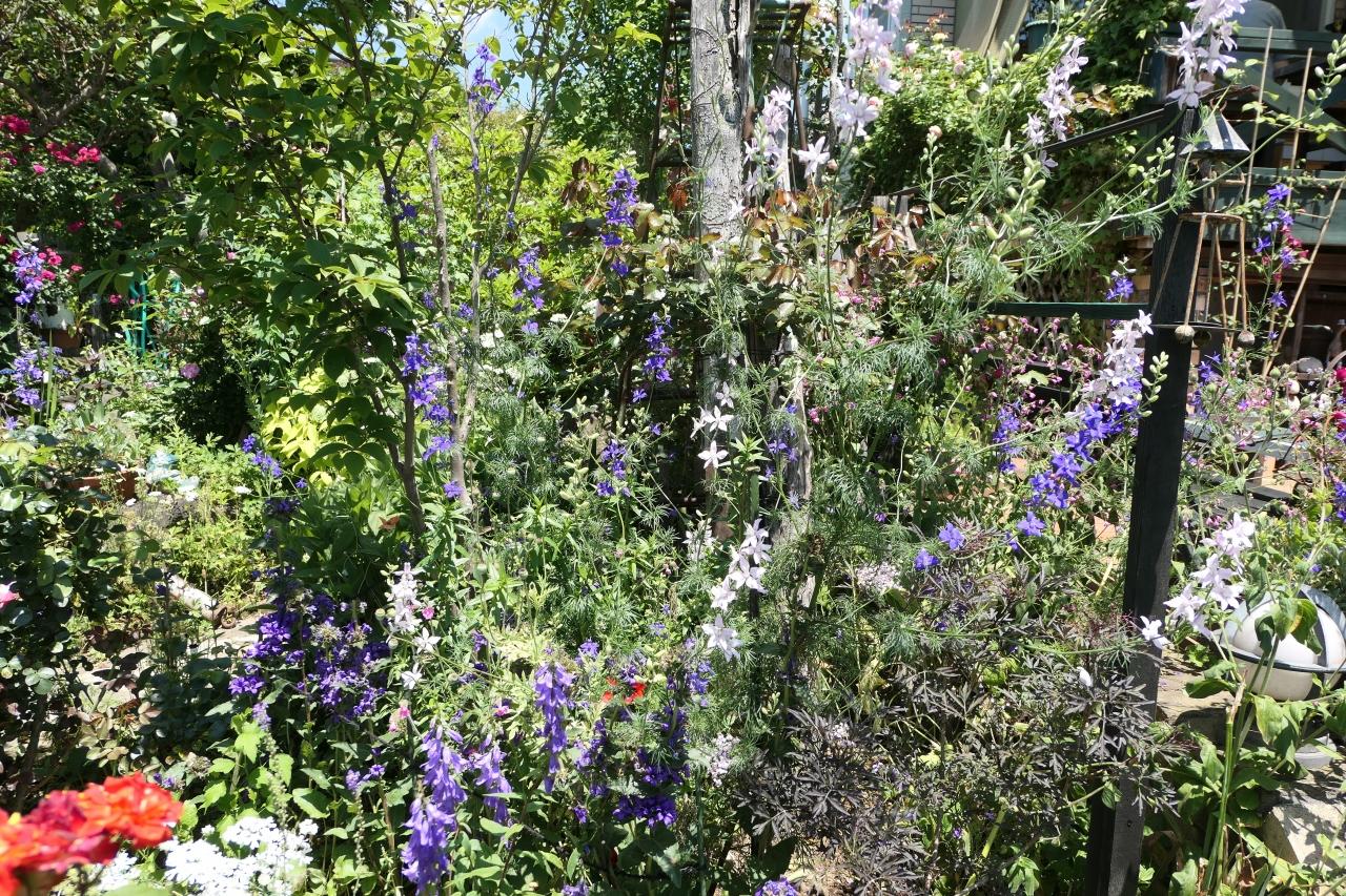 夏を代表するクレマチスをはじめ、つる性草花も見事。