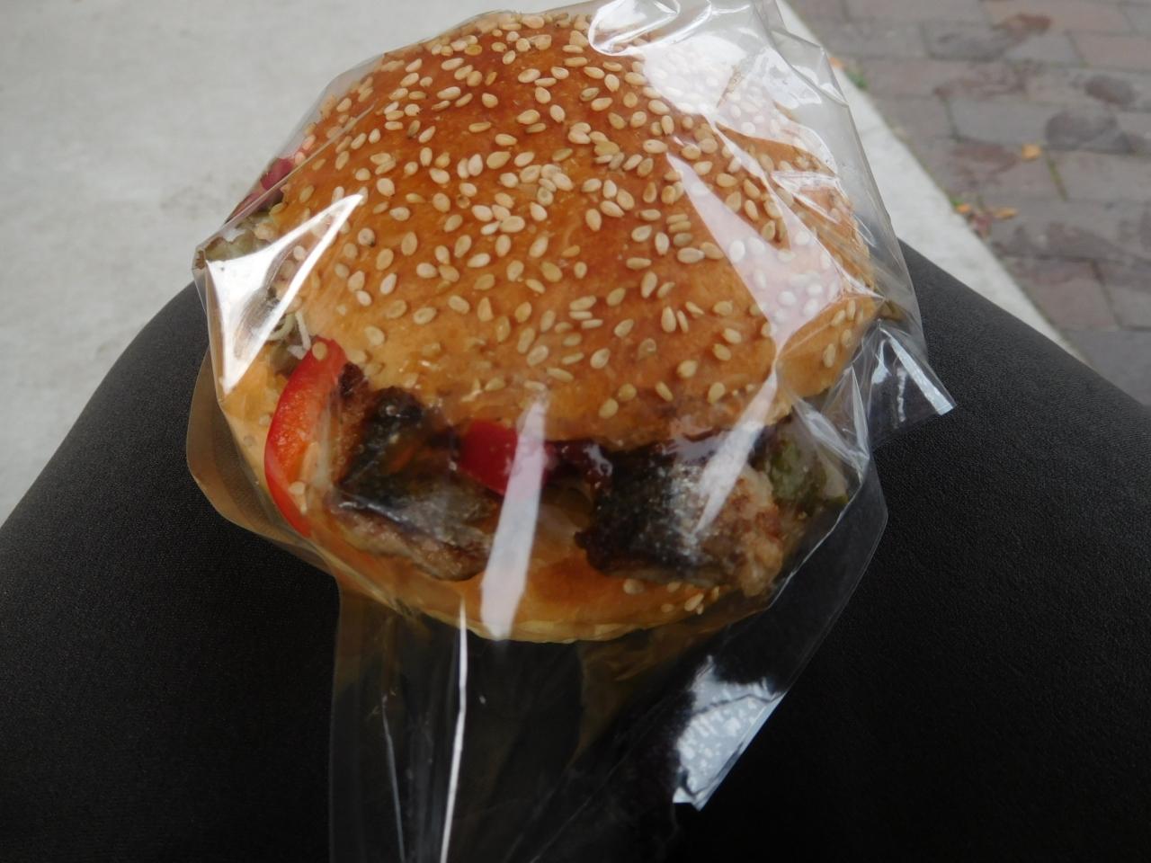シーパルピア女川の店舗もそれなりにごった返していたので、ゆっくり買い物をするのは難しかった。店頭で売られていた「サンマバーガー」を購入して、その辺のベンチで食べる。