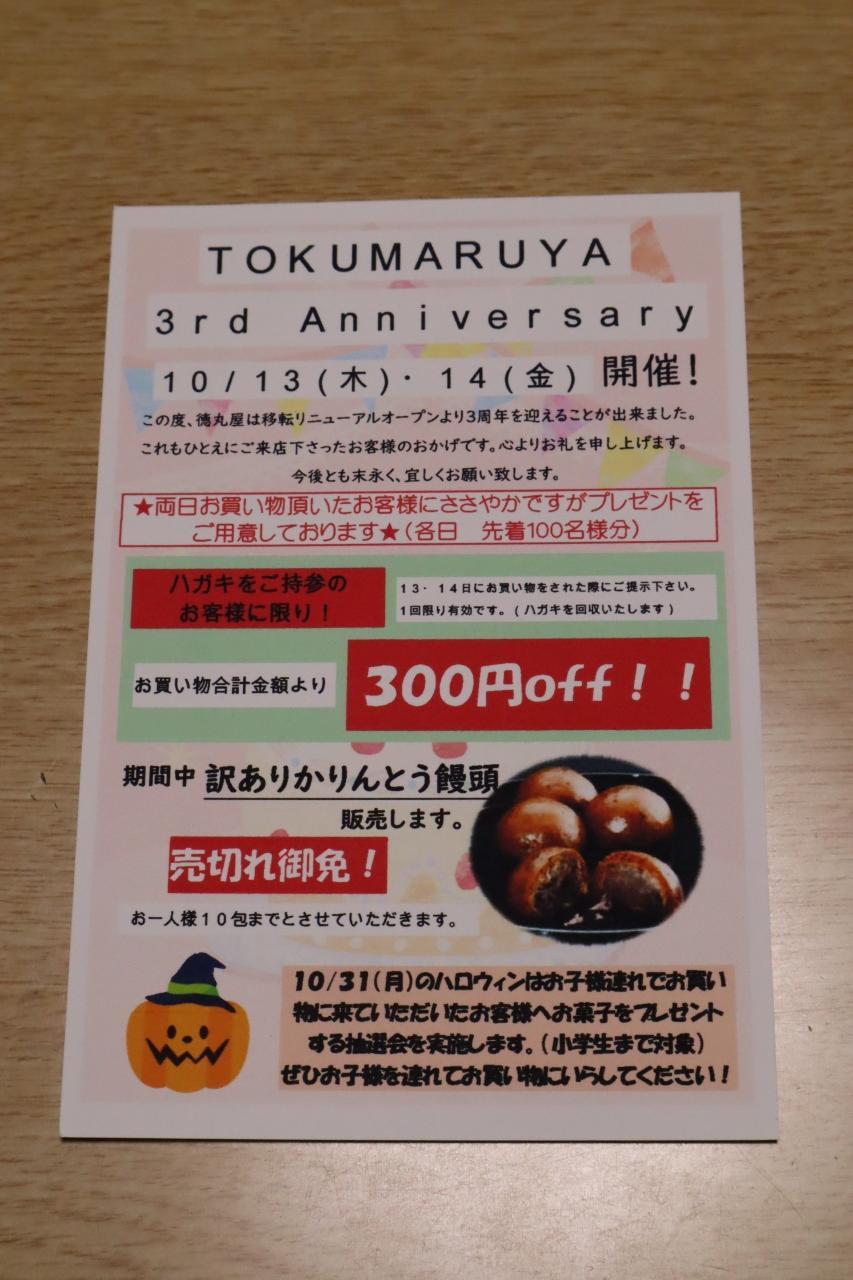 また、10月13日は徳丸屋さんのリニューアル移転して3周年。私達も常連の域に達し、ポイントカード2枚目に突入笑