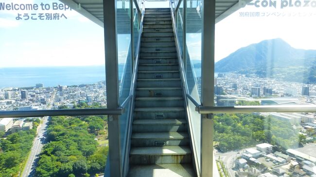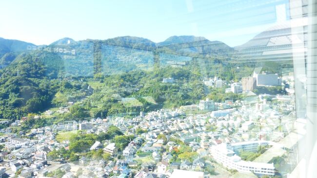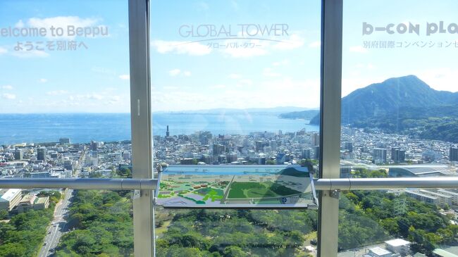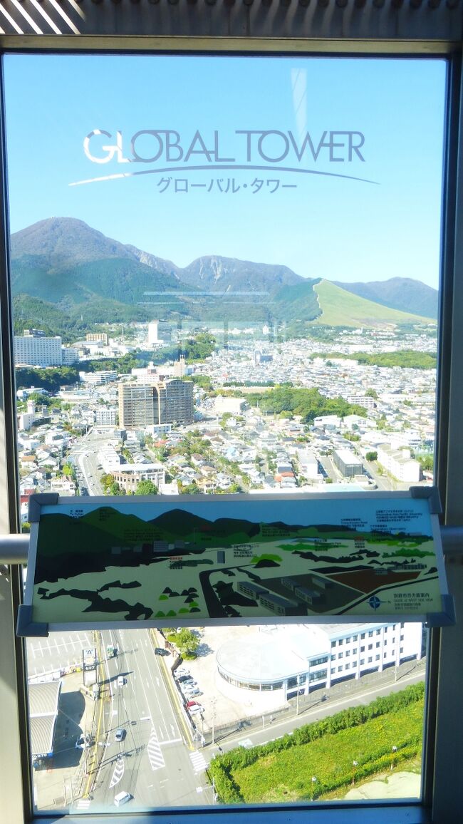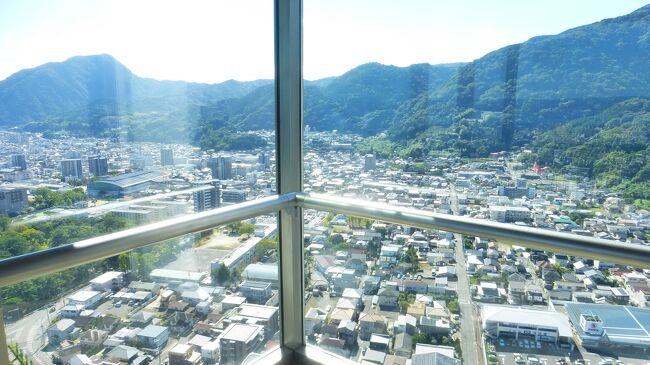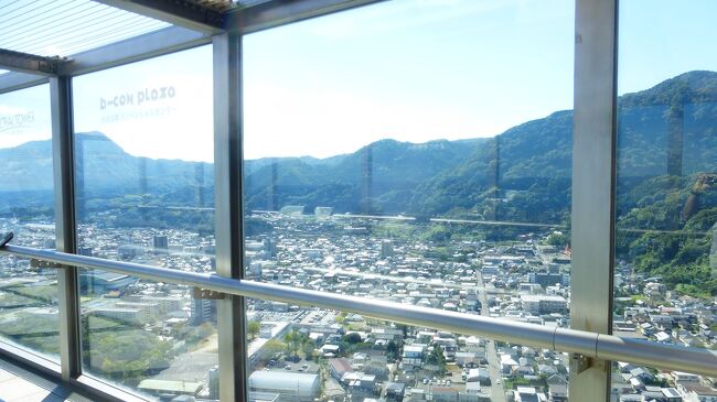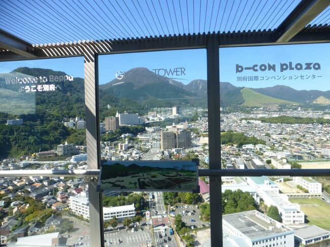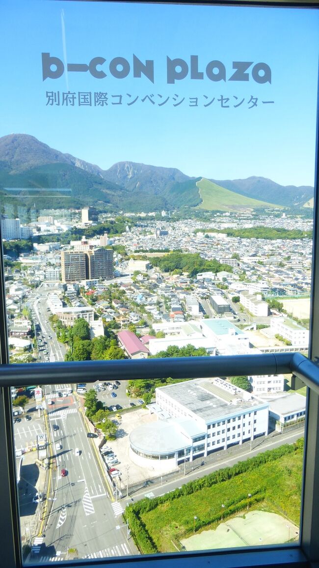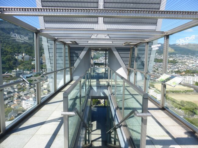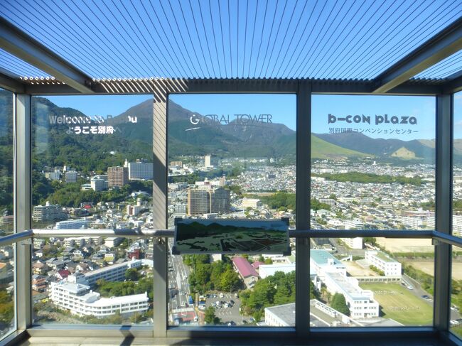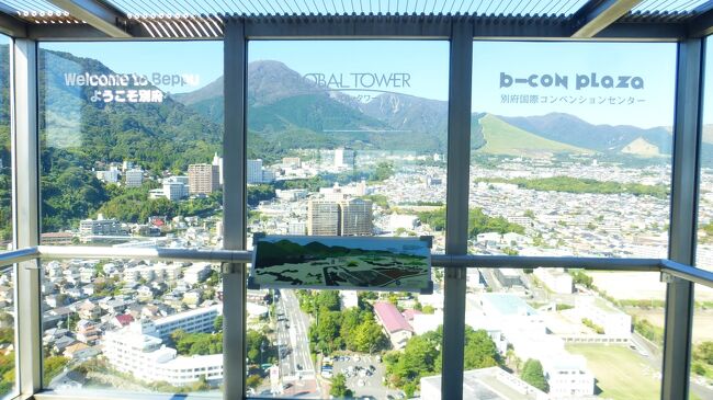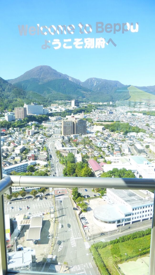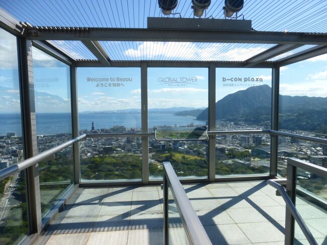 2日目「別府ステーションホテル」チェックアウト後にフロントで荷物を預かって貰い、別府駅西口から路線バス利用で、「グローバルタワー」に行き、そこからの眺望を楽しんだ時の様子です。