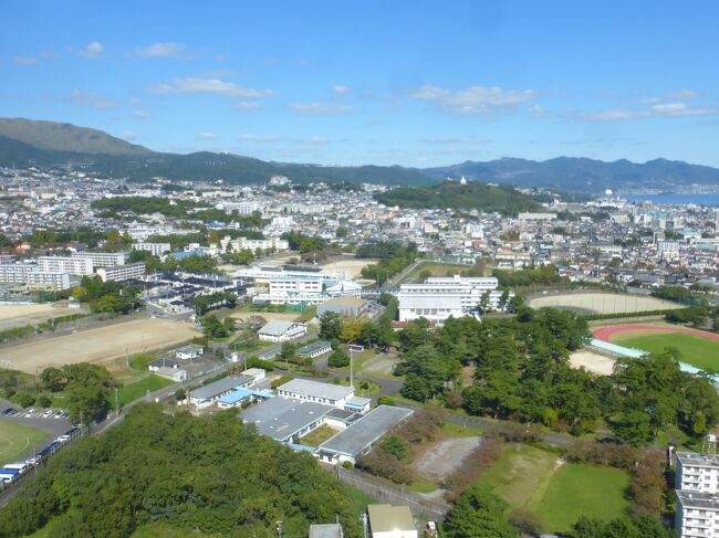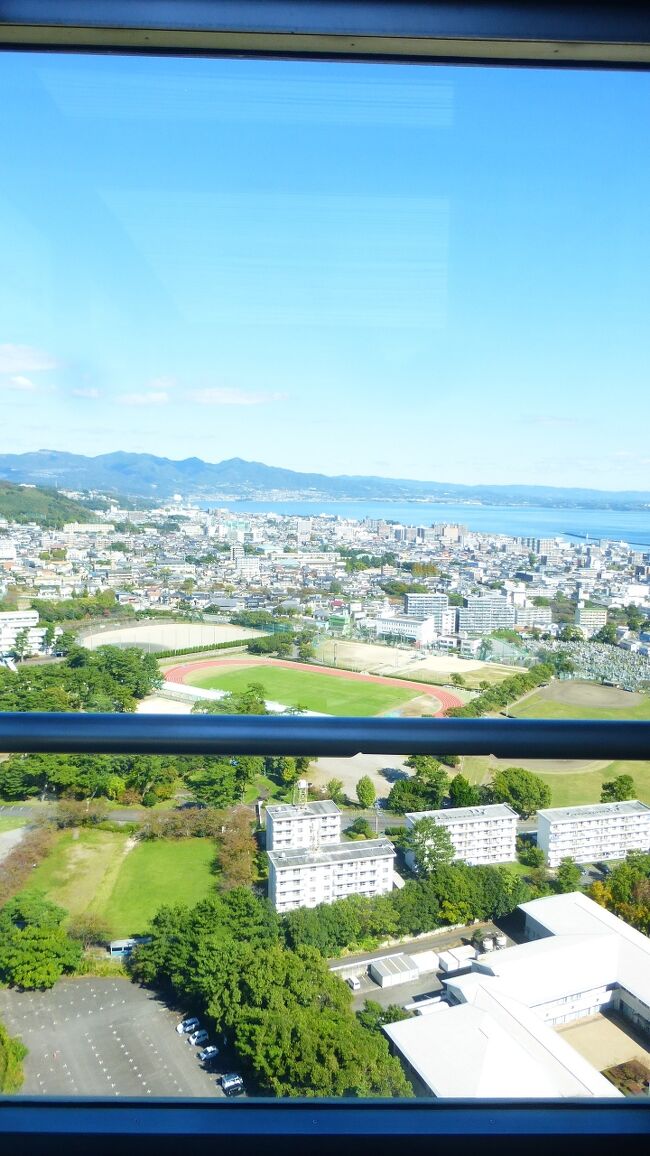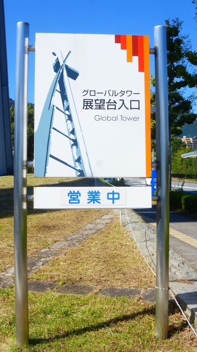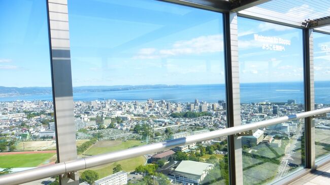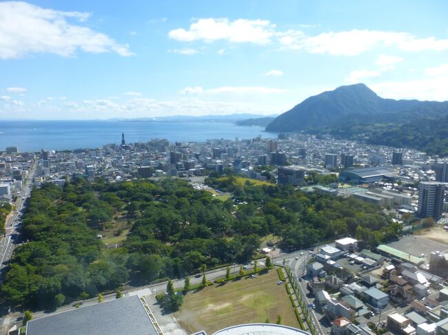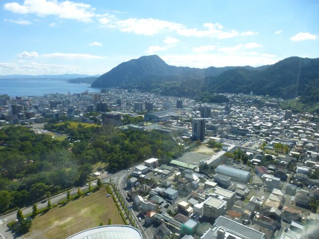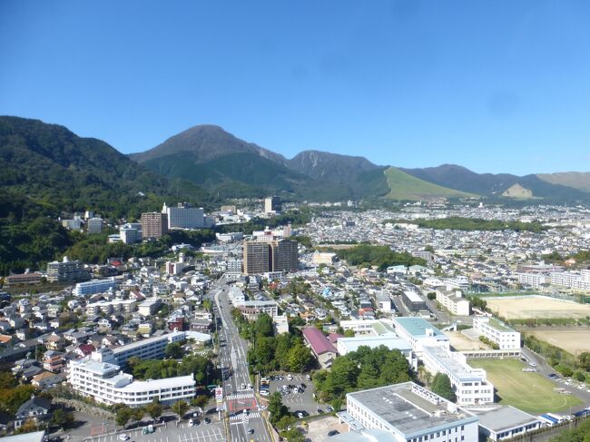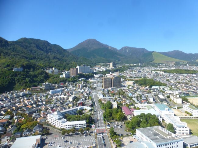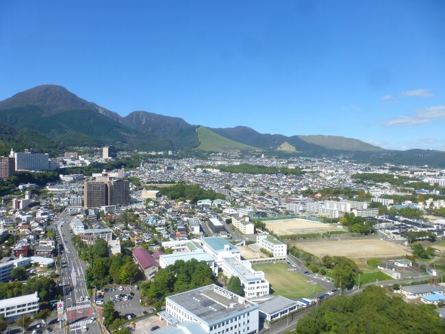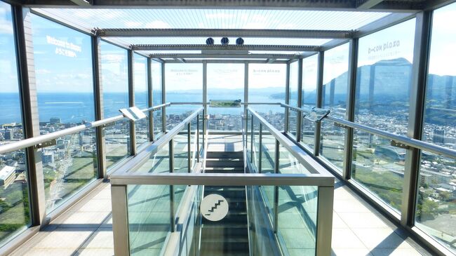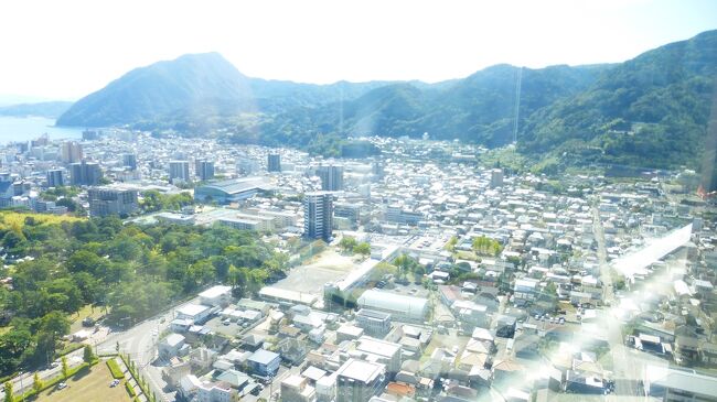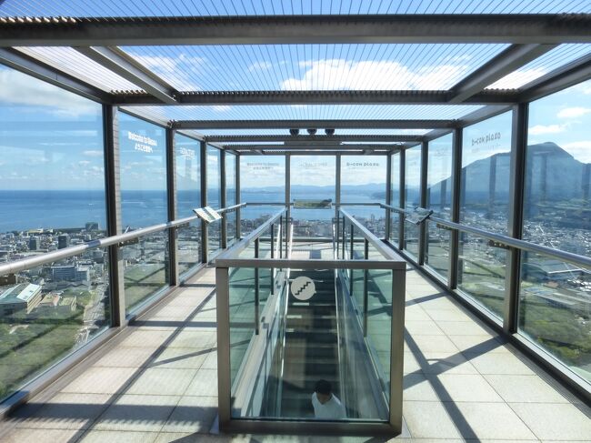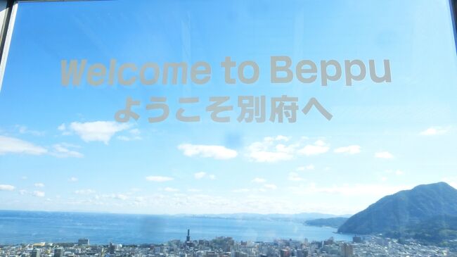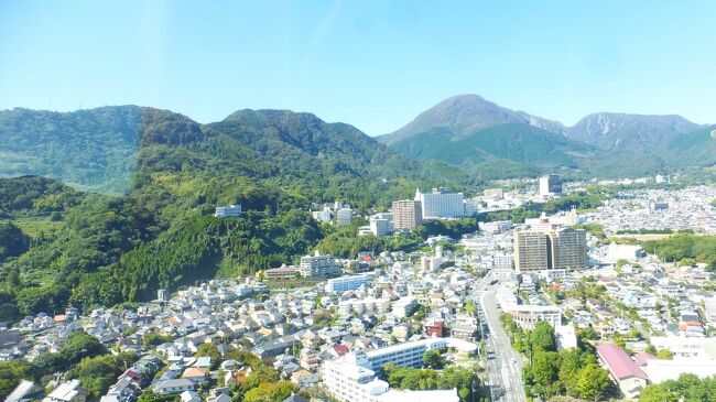 2日目「別府ステーションホテル」チェックアウト後にフロントで荷物を預かって貰い、別府駅西口から路線バス利用で、「グローバルタワー」に行き、そこからの眺望を楽しんだ時の様子です。