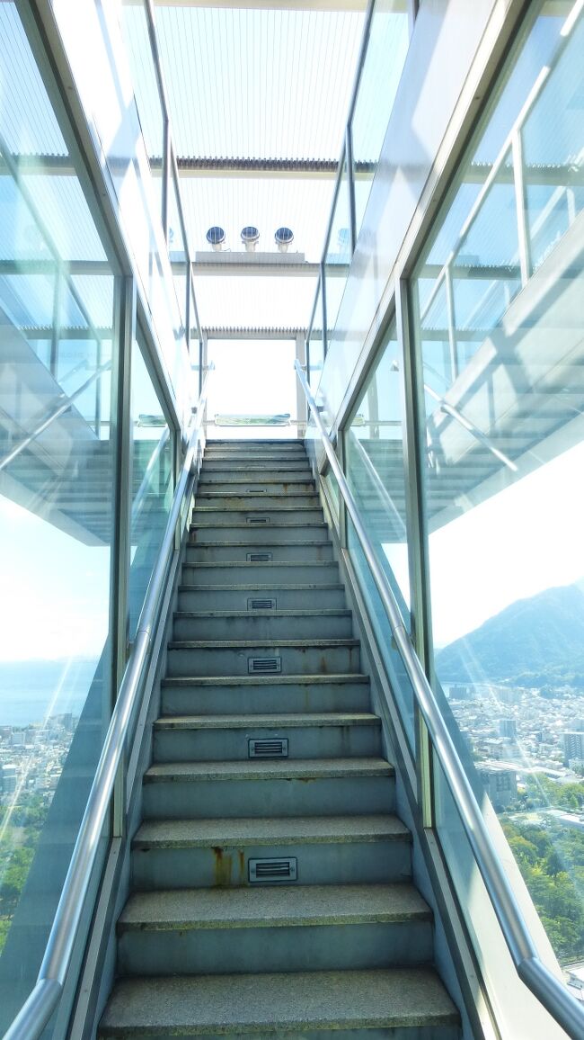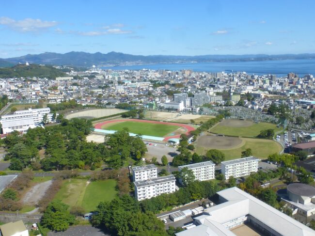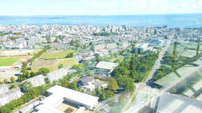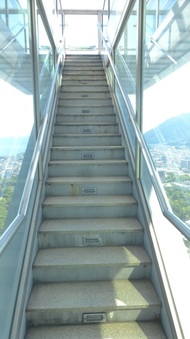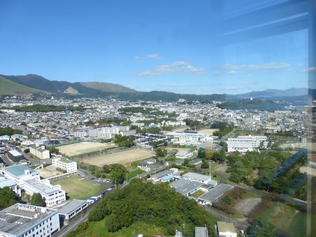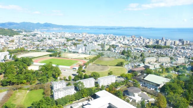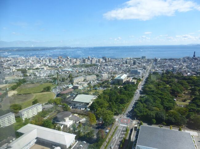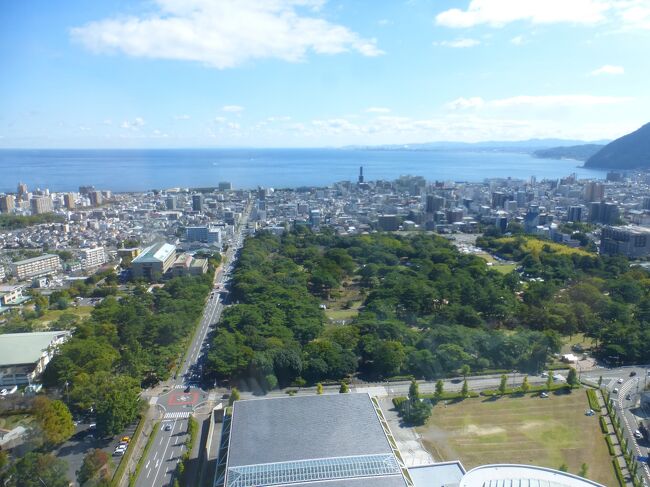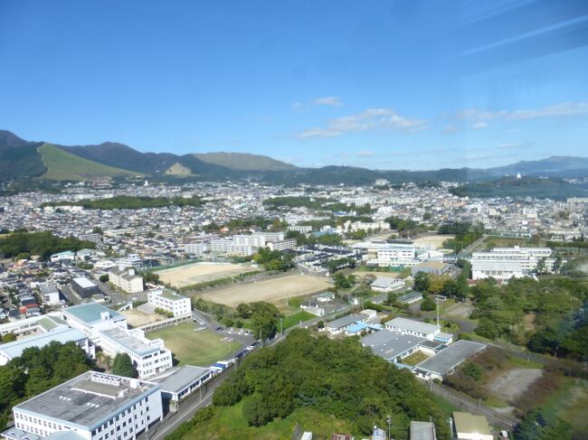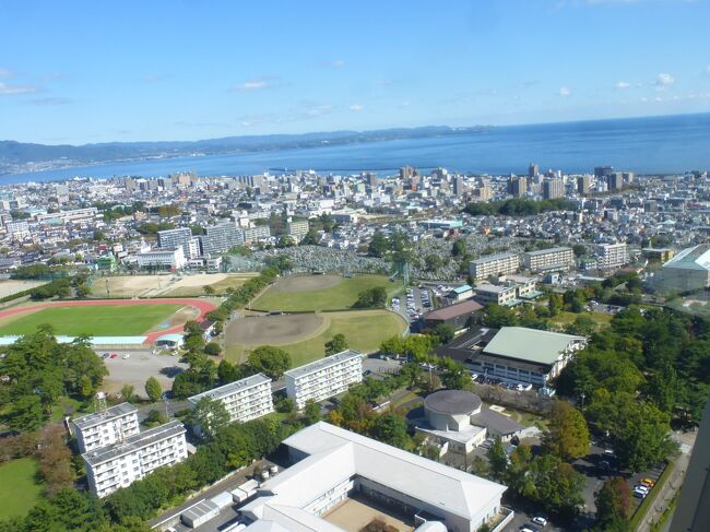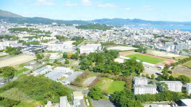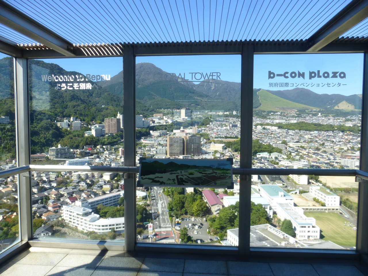 2日目「別府ステーションホテル」チェックアウト後にフロントで荷物を預かって貰い、別府駅西口から路線バス利用で、「グローバルタワー」に行き、そこからの眺望を楽しんだ時の様子です。