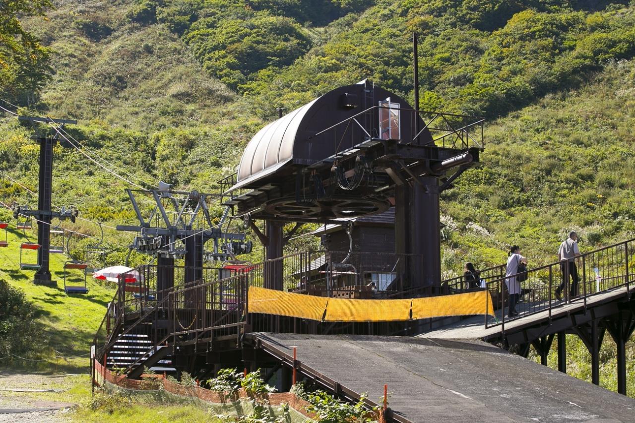 このリフト、なんか高さが低いと感じていたのですが、雪が無い夏用にケーブルを低く設定しているようです。可動式ですね。