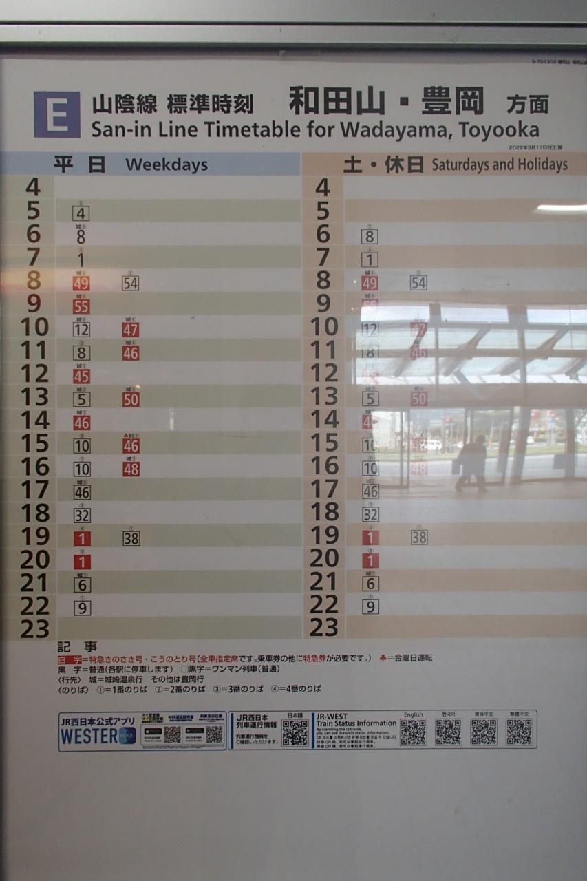 和田山方面の列車をチェックする。