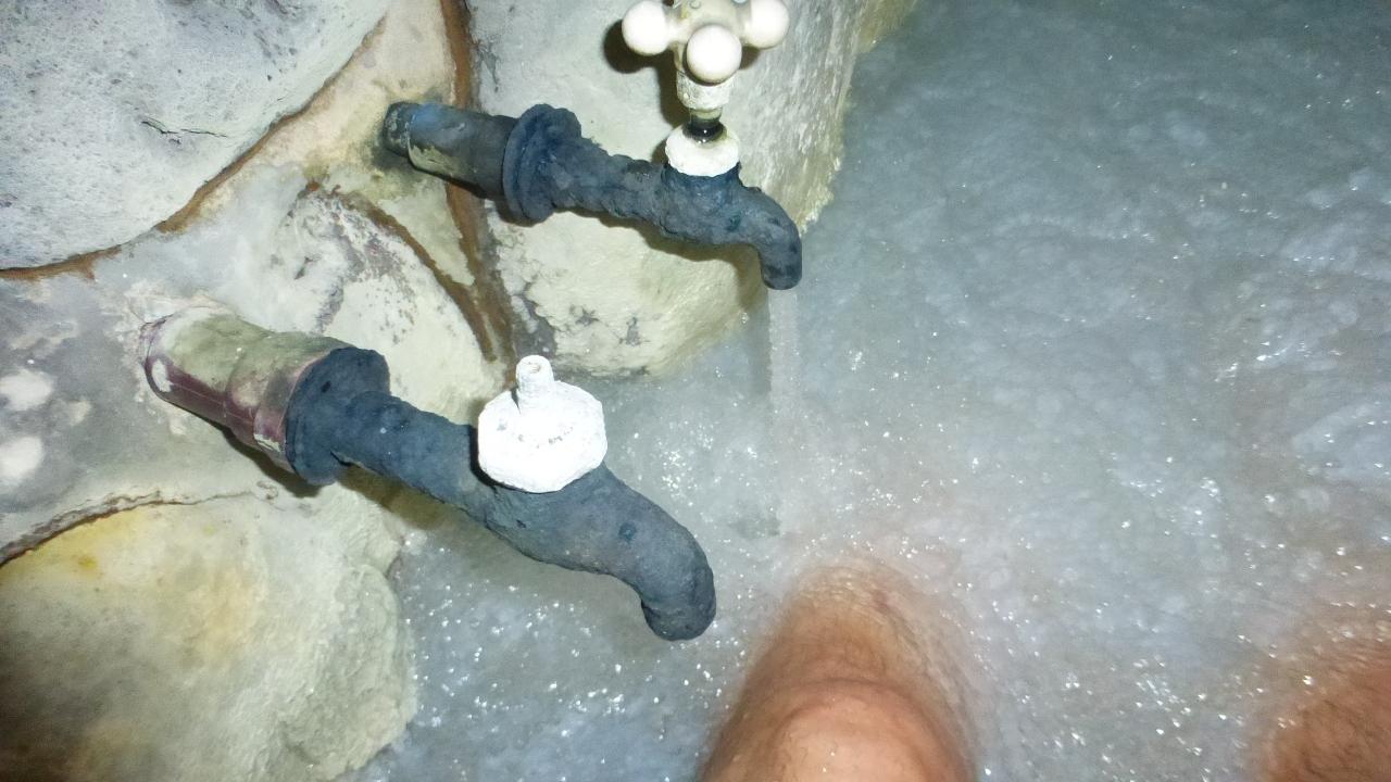 清掃の為、上の露天風呂のお湯を捨てているのかも知れないです。 -