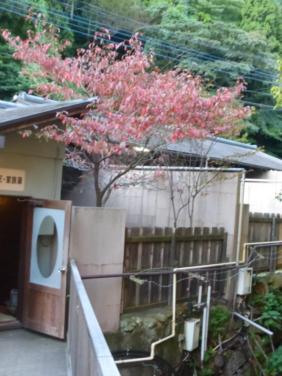 さっき貸切露天風呂内から見た、紅葉し始めている樹々です。