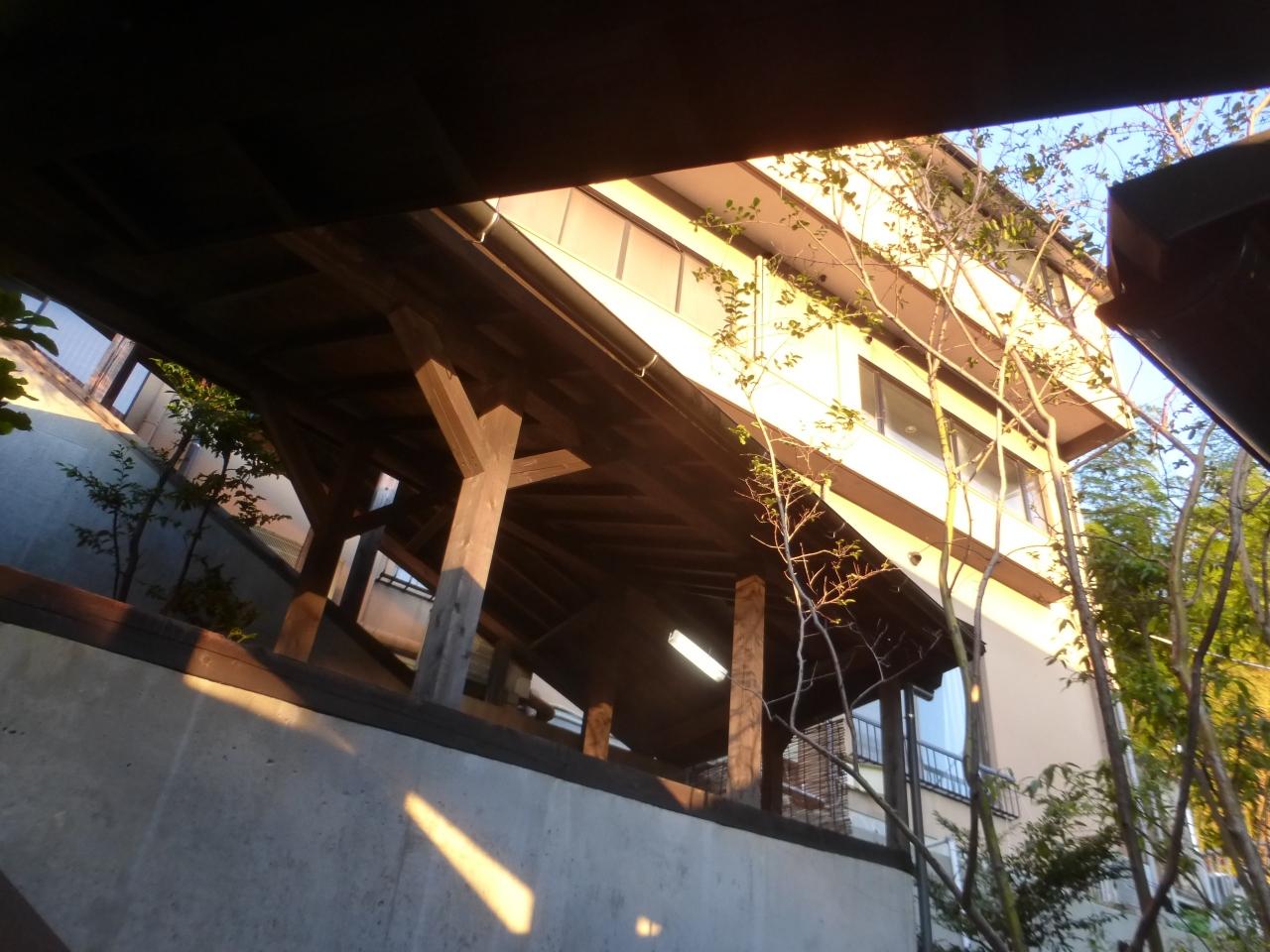 温泉施設棟に陽が当たって来ました。