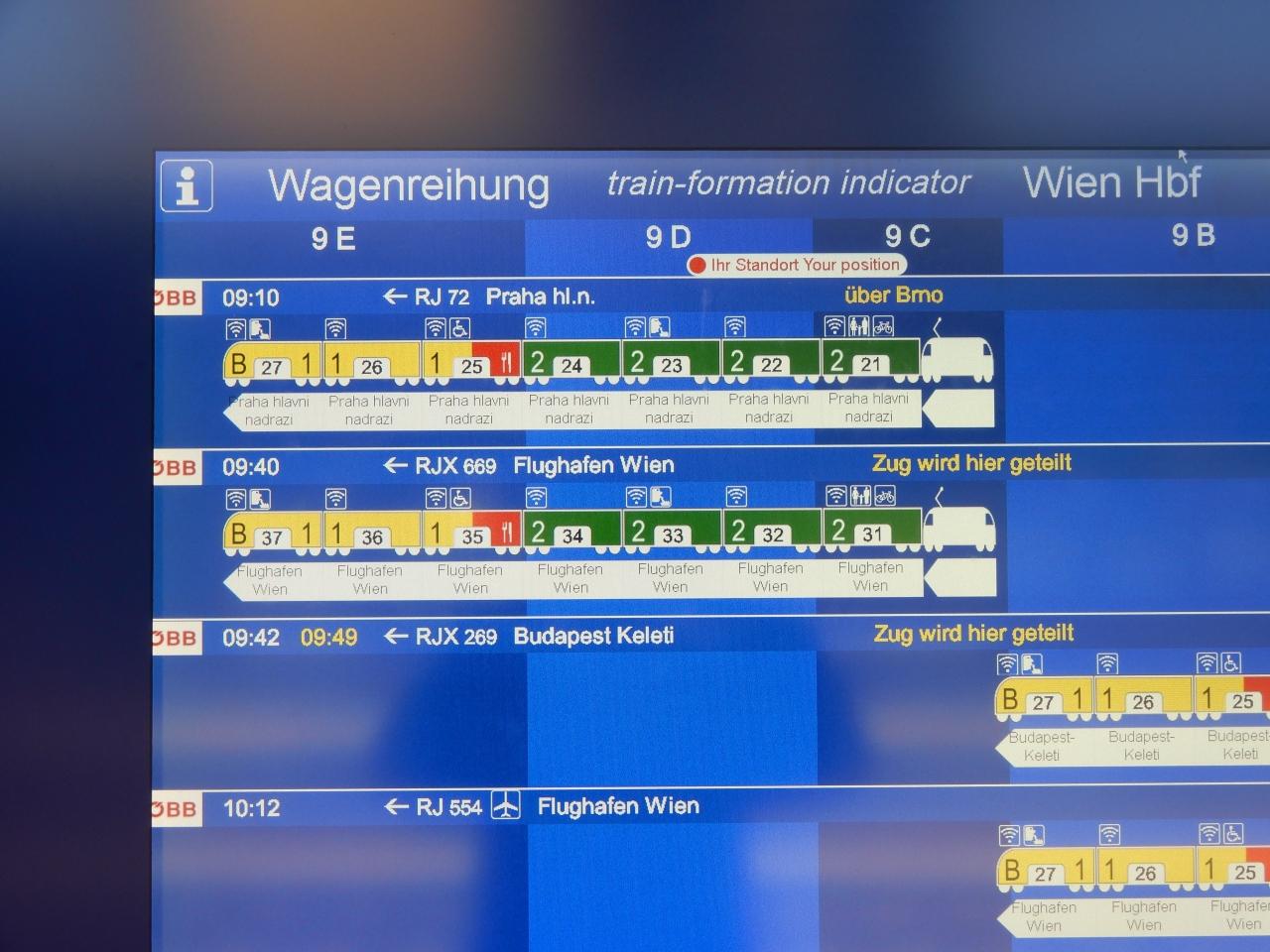 乗車するのは、「9:10発レイルジェット・プラハ行き」