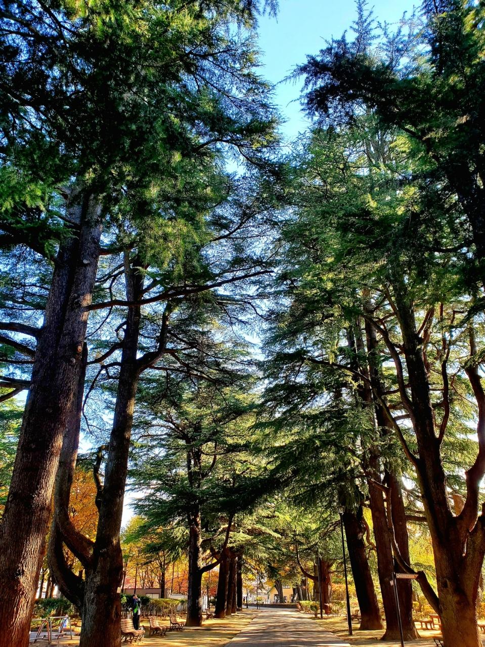 立派なヒマラヤ杉並木が、お出迎え♪︎あがたの森 グルメ・レストラン