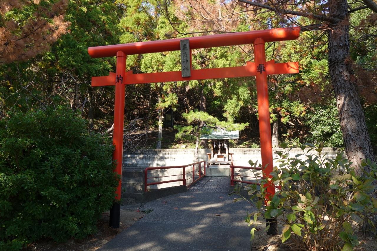 右手に、摂社とか末社でしょか?厳島神社。池の真ん中に祠ですね。なんとなく、宮島を模しているような、弁天さんのような。