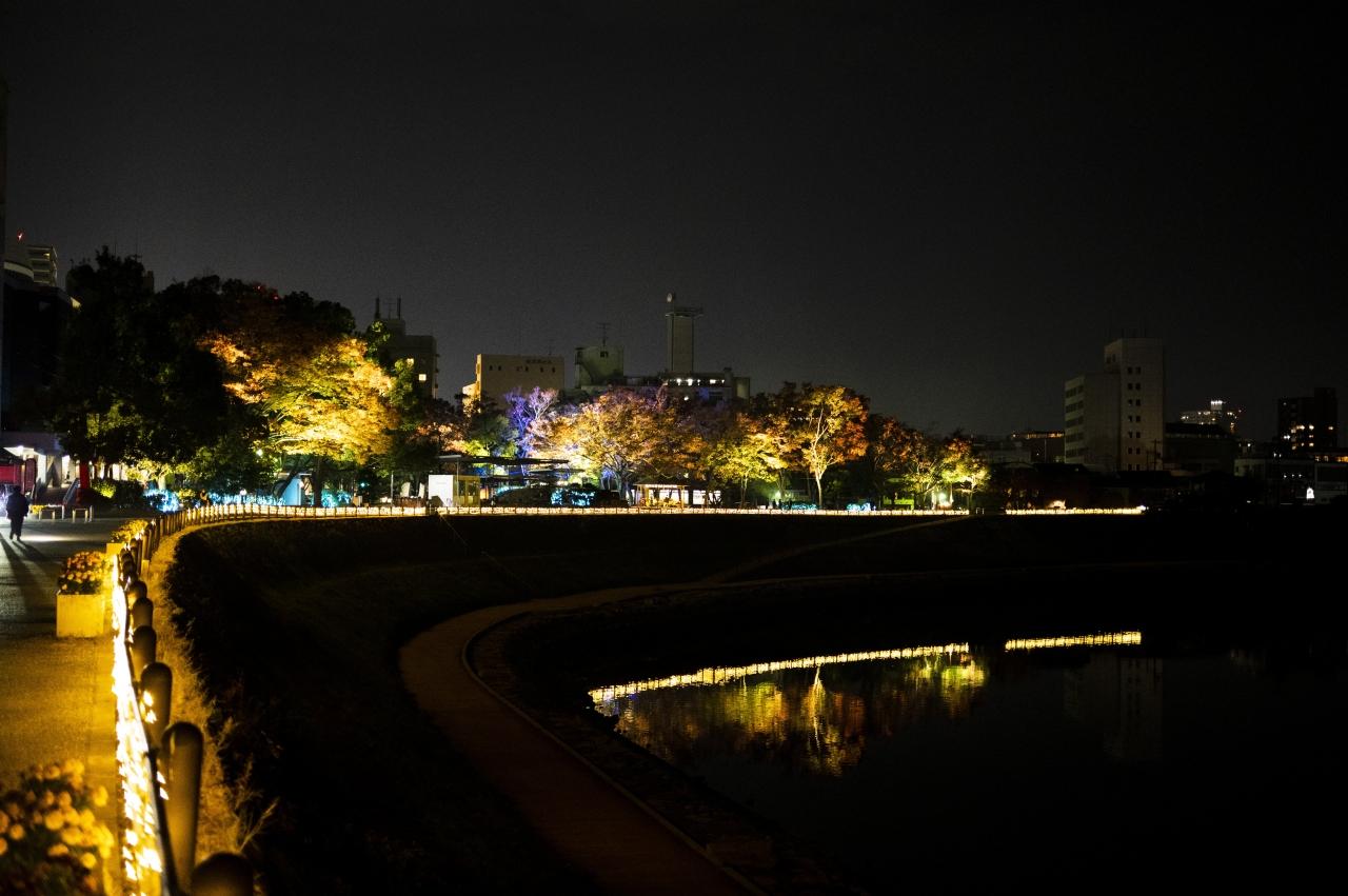 そして、駅から離れると川の真ん中にもみじ祭りののぼり