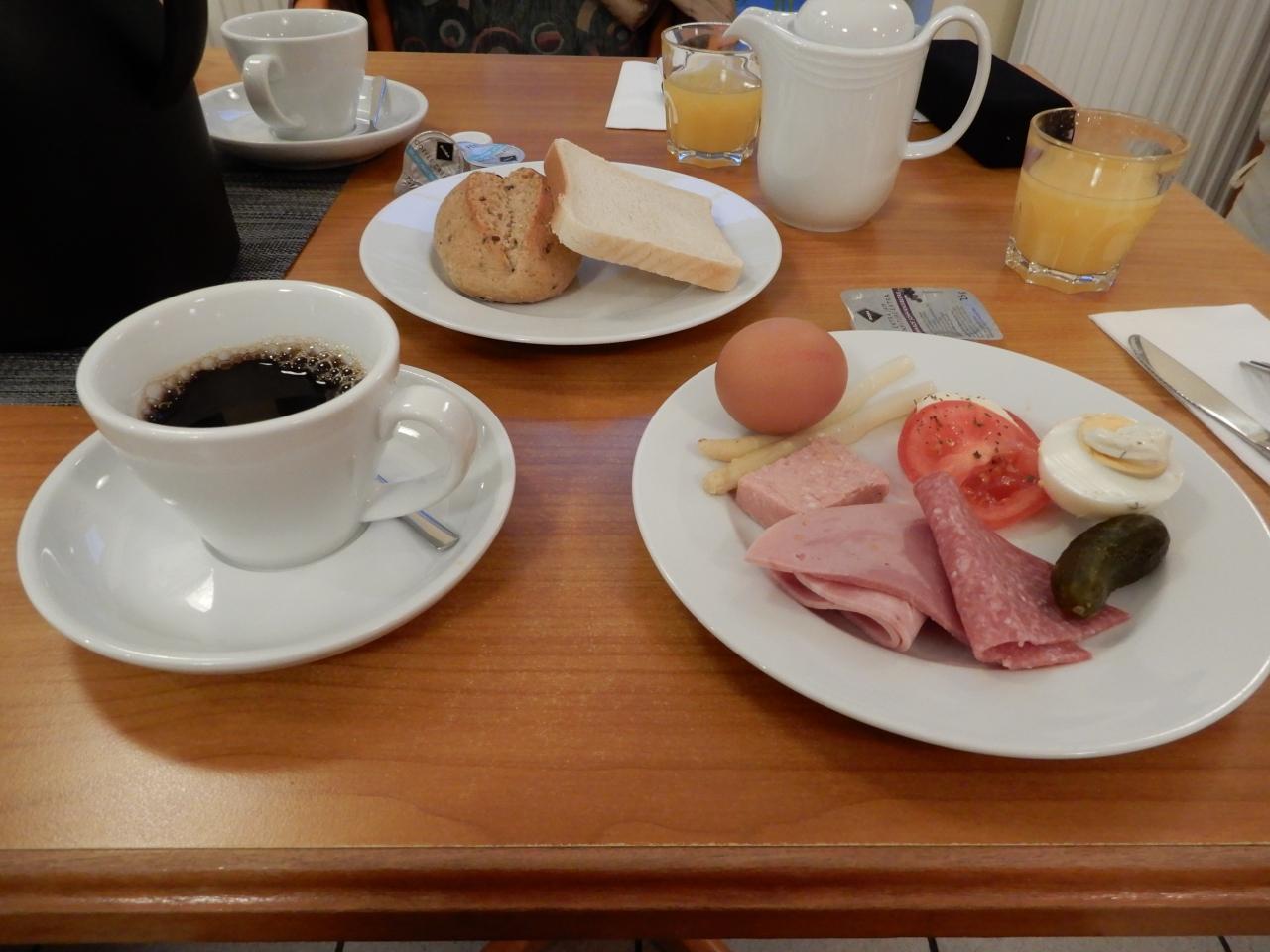 当初の予定は、ドレスデン中央駅7時過ぎ発の列車に乗ることにしていましたので、朝食は無しにしていたのですが、妻の腰の具合も完璧ではありませんし、ここは無理をせず1本列車を遅らせて、ゆっくり朝食を食べて出発することにしました。 -