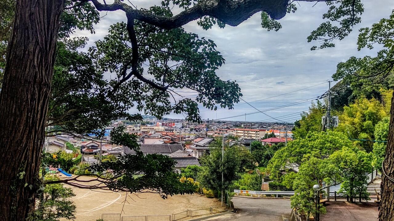墓所からの眺め。高校野球でおなじみの益田東高等学校が見える