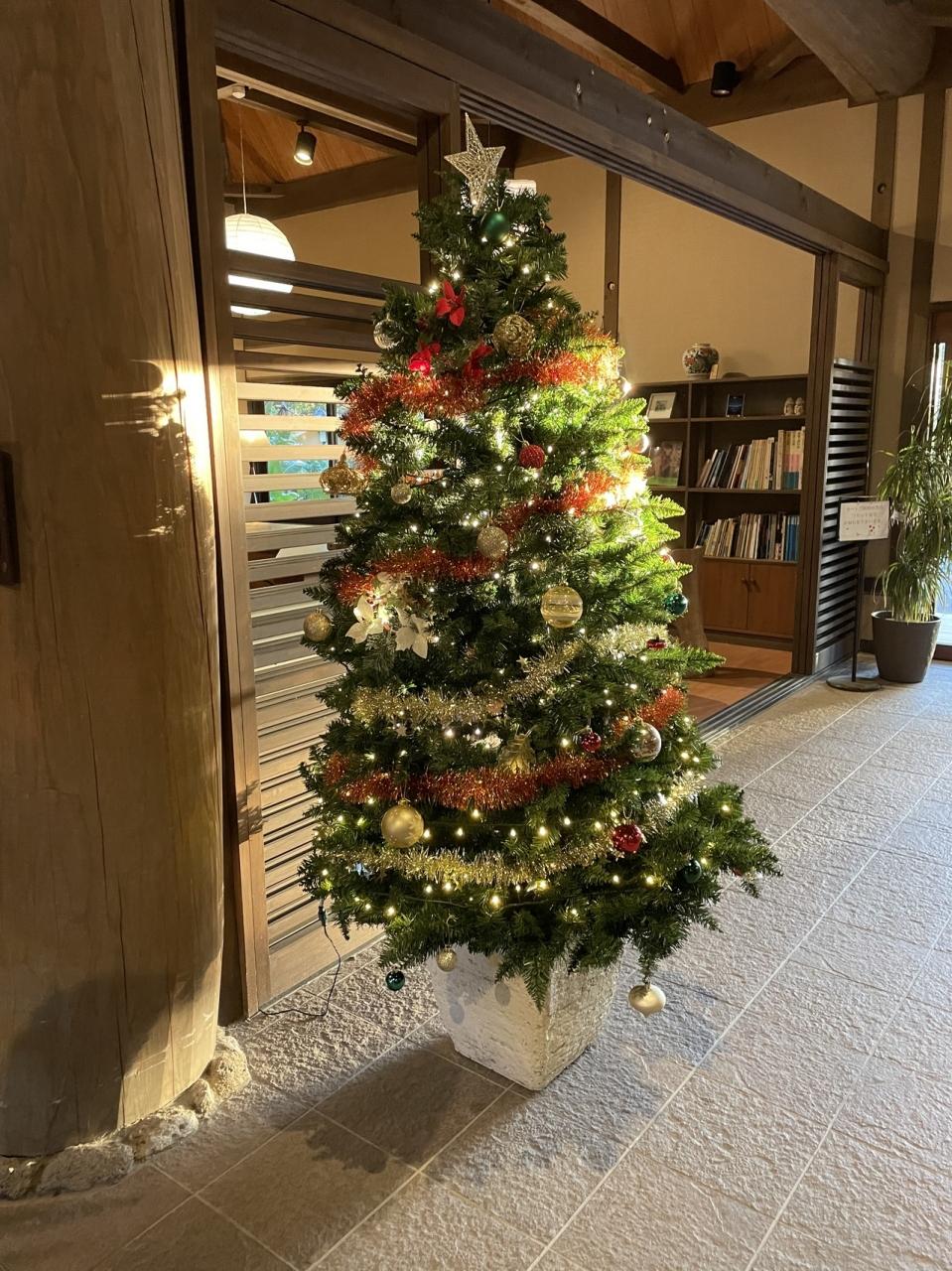煌びやかなクリスマスツリーの隣で、福井県からやってきたサンタクロース姿の恐竜博士が、「ぼくといっしょに写真をとろう!」と誘ってくれていた。