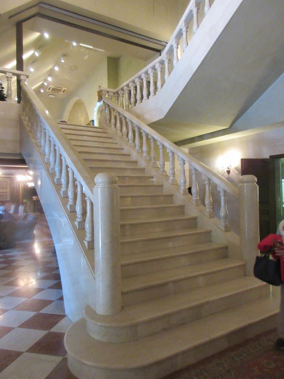 ここが玄関です。白い階段が素敵です。お城にしてはちょっと小さい玄関かなと思いました。写真を撮る人がいっぱいました。
