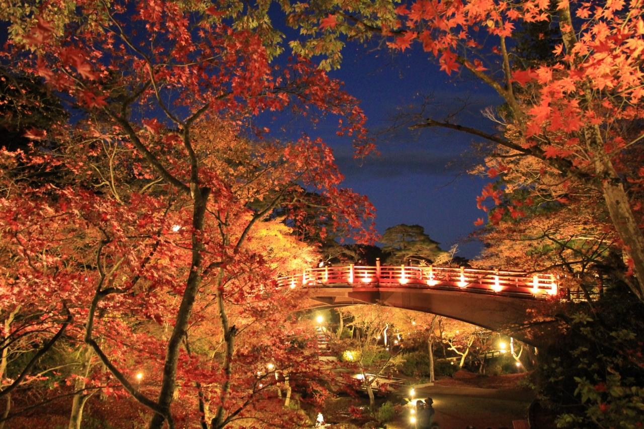 夜は紅葉がライトアップされ、幻想的な世界を楽しめます。