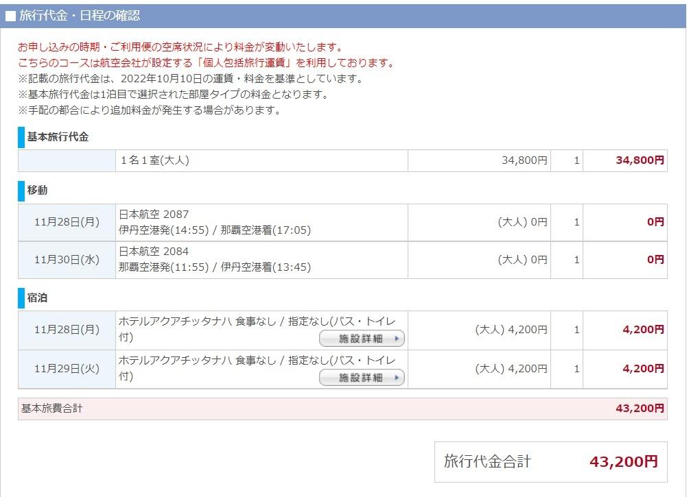 阪急交通社で同じ条件で検索してみました。43,200円です。